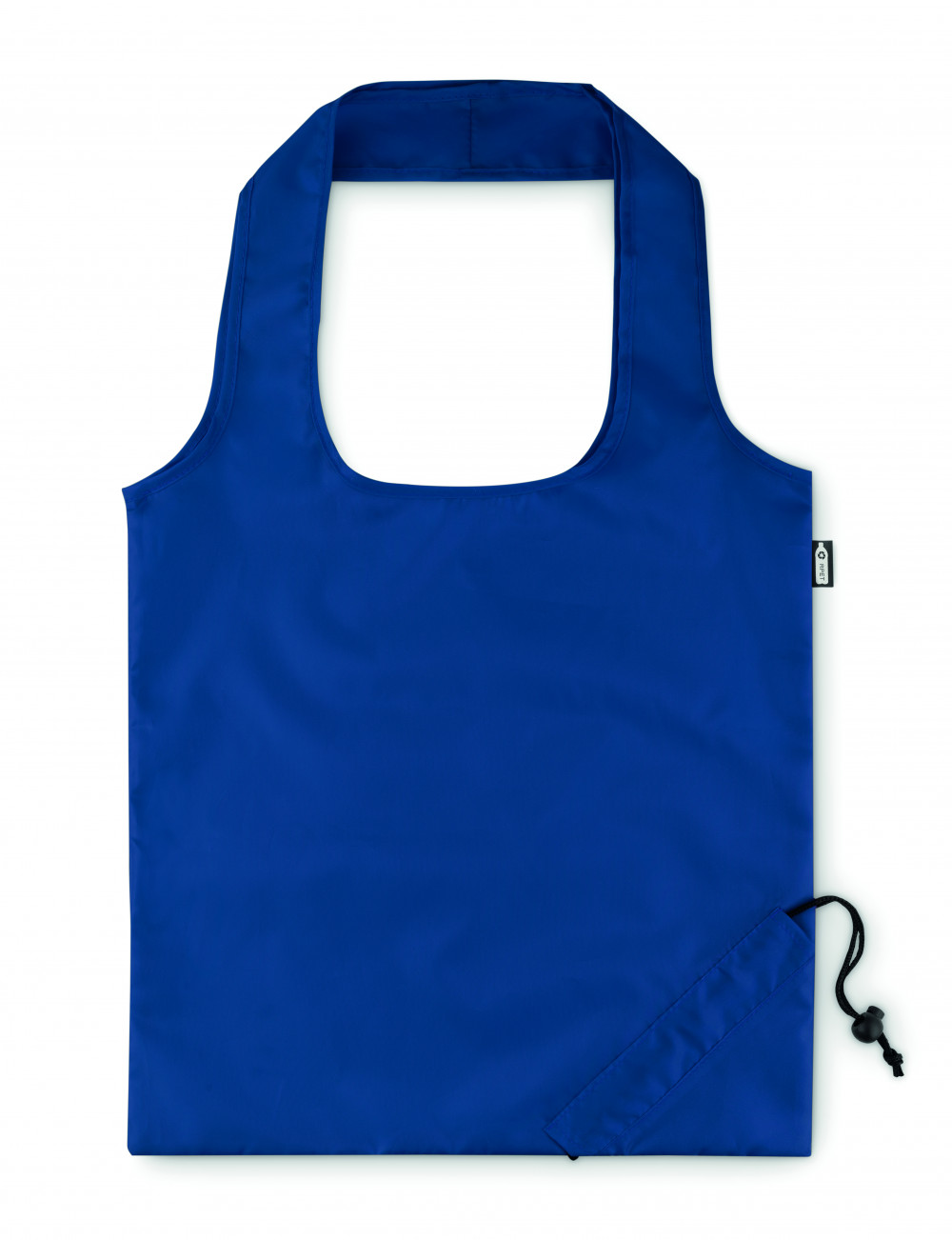Összehajtható bevásárlótáska 190T RPET anyagból. A táska egyik sarkában kialakított praktikus húzózsinóros résznek köszönhetően kicsire összehúzható. A szublimációs nyomtatás csak a fehér színű terméken érhető el.