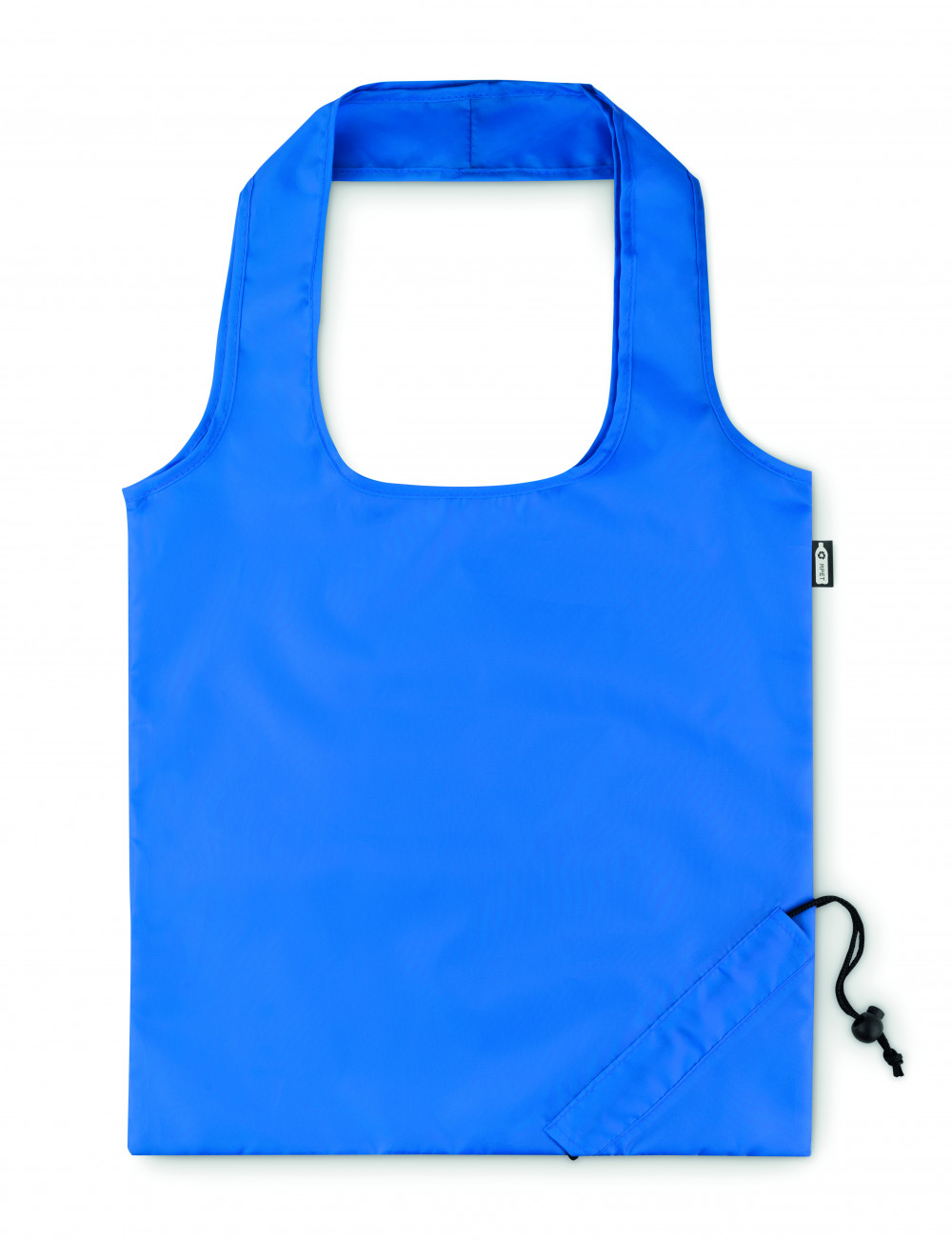 Összehajtható bevásárlótáska 190T RPET anyagból. A táska egyik sarkában kialakított praktikus húzózsinóros résznek köszönhetően kicsire összehúzható. A szublimációs nyomtatás csak a fehér színű terméken érhető el.