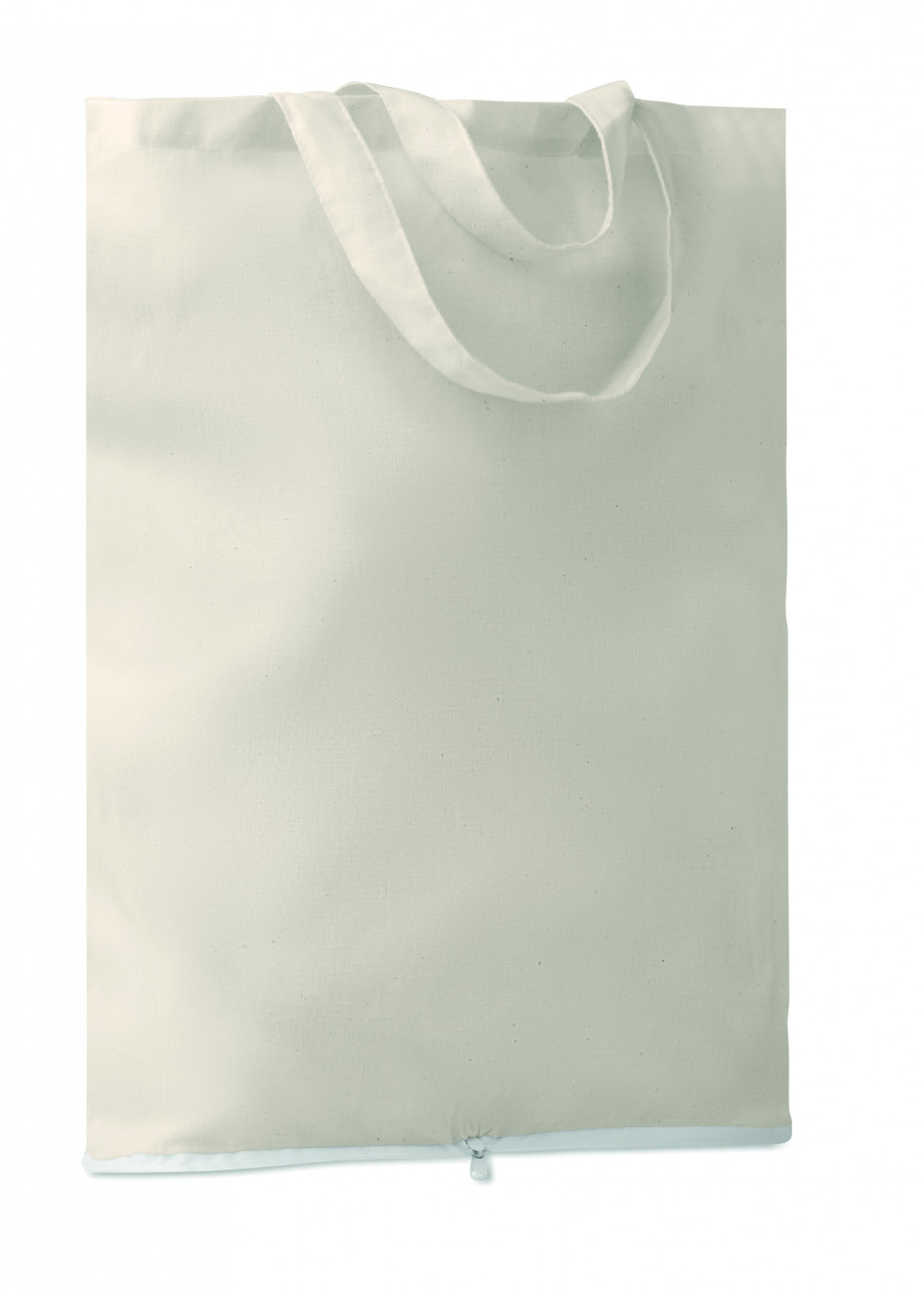Összehajtható, 100 g vastag pamut bevásárlótáska rövid füllel. Kihajtva szállítjuk.