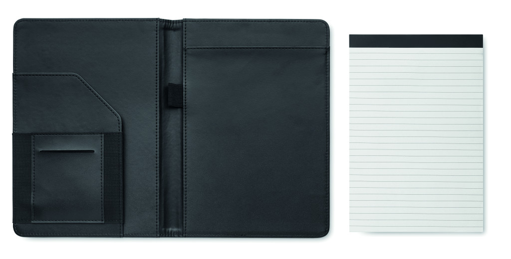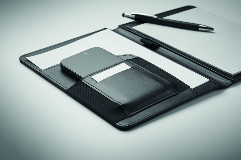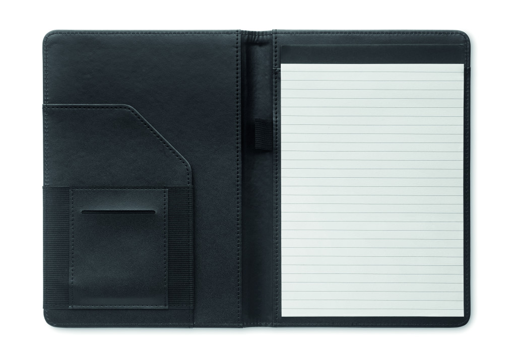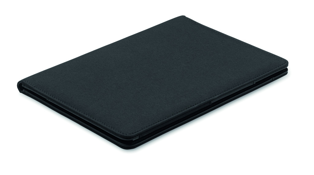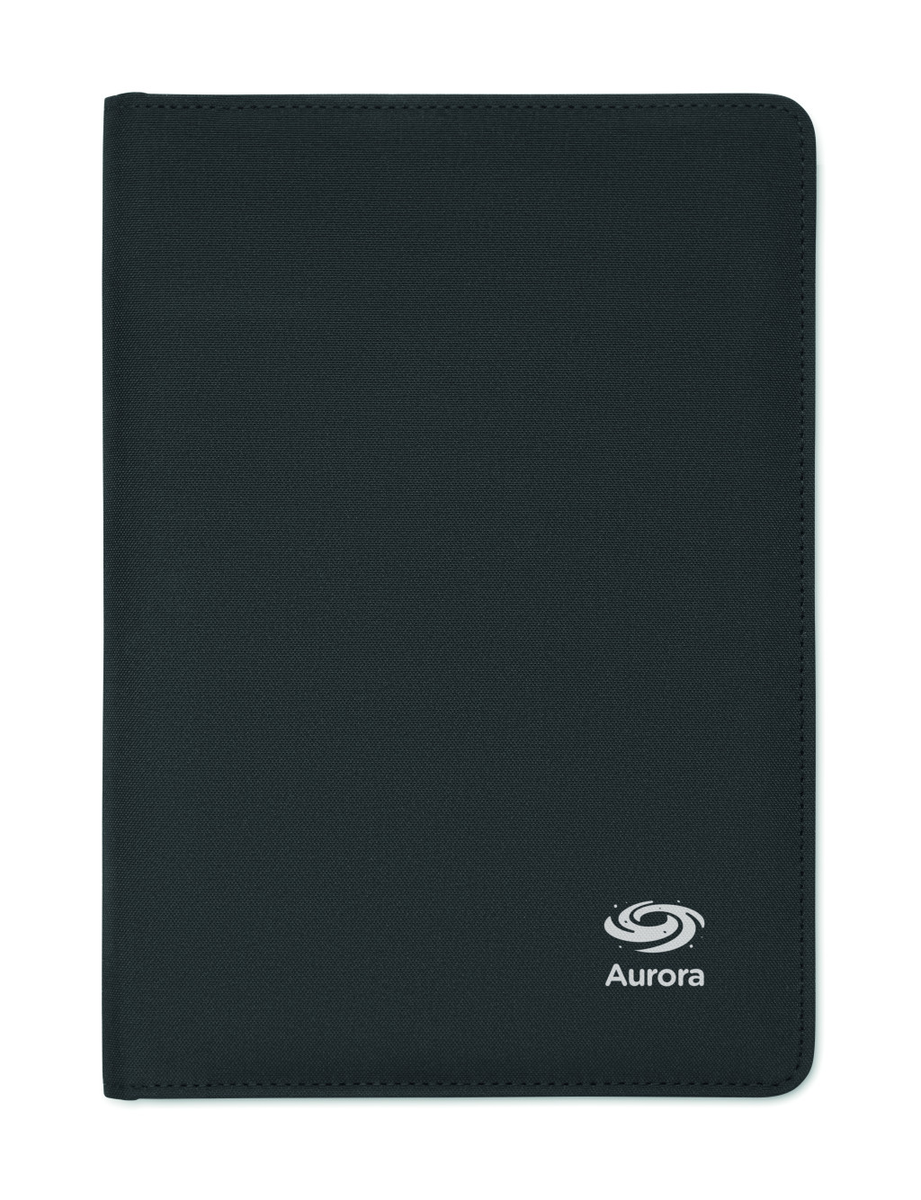 A5 iratmappa melírozott színű, 300D RPET anyagból. Cserélhető A5 jegyzettömb. 40 vonalas fehér oldal (20 lap) bambuszpapírból. Tolltartó. A belső oldalon kártyatartók és egy nagy rekesz.