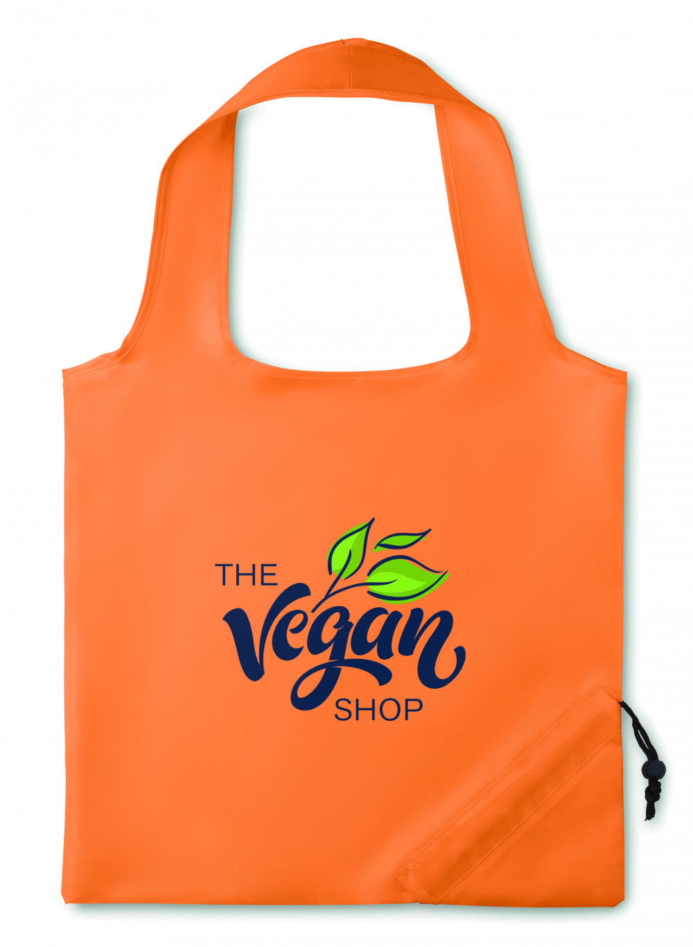 210D poliészter bevásárlótáska. A táska egyik sarkában kialakított praktikus húzózsinóros résznek köszönhetően kicsire összehúzható.