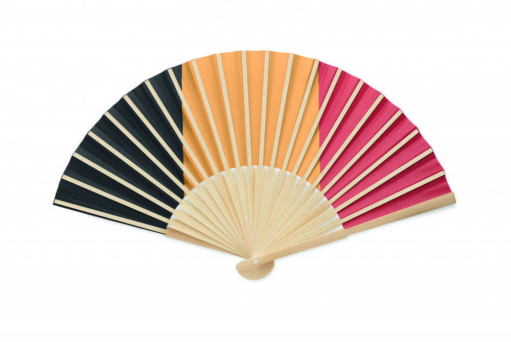Legyező bambusz bordákkal és papír szövettel, országzászlós dizájnnal.