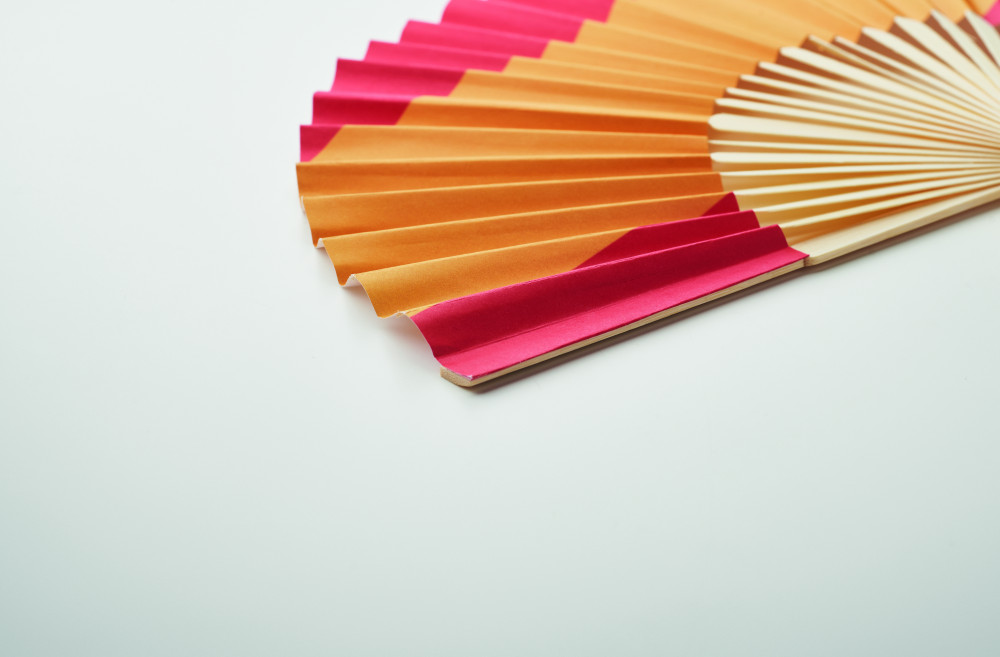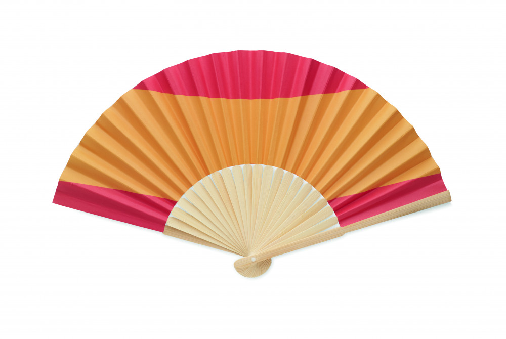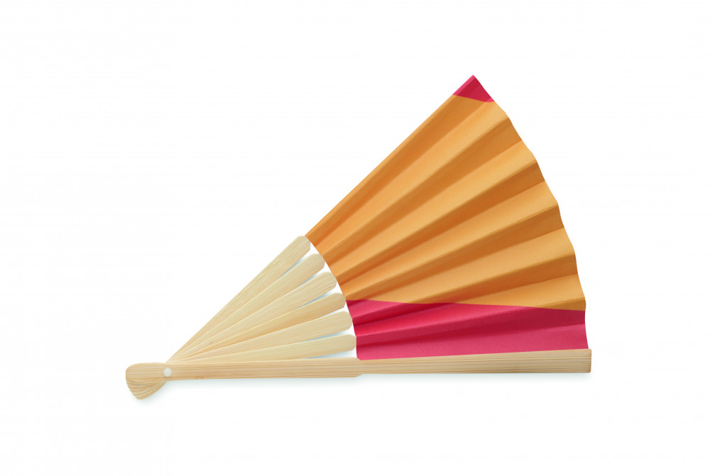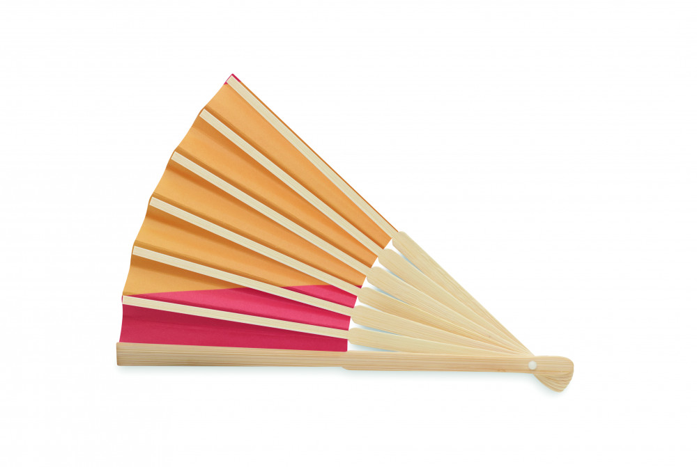 Legyező bambusz bordákkal és papír szövettel, országzászlós dizájnnal.