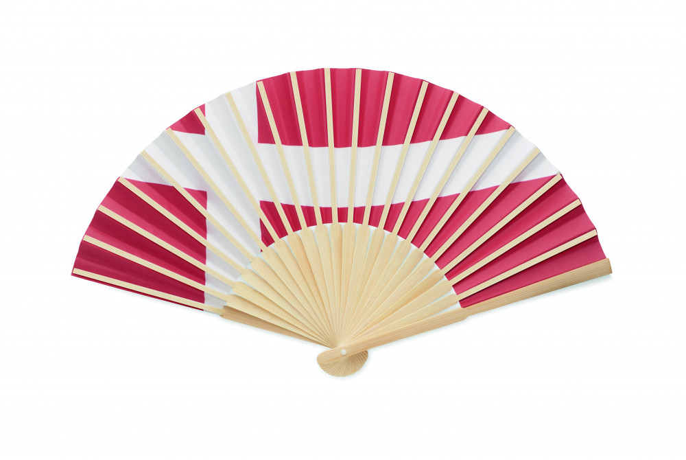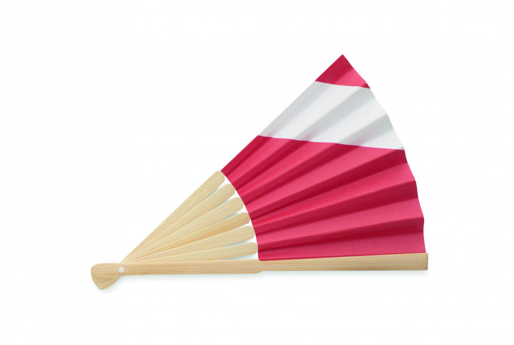 Legyező bambusz bordákkal és papír szövettel, országzászlós dizájnnal.