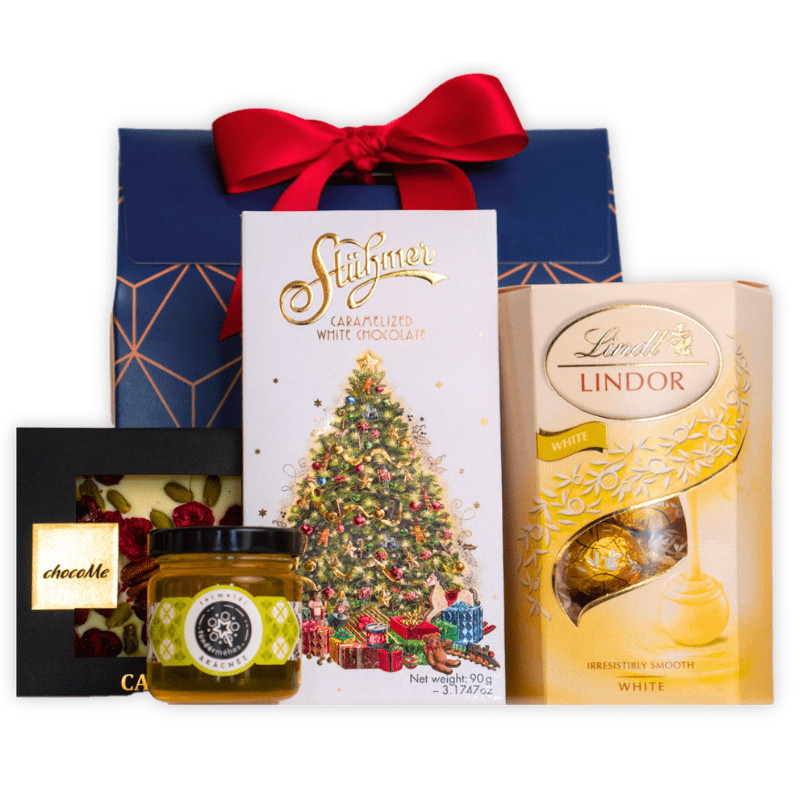 Lepd meg kollégáidat vagy partnereidet egy valódi ínyencséggel! A "Frosted Joy" ajándékcsomag olyan különleges kincseket rejt, mint a Tündérméhes kézműves akácméz és a Stühmer karamellizált fehércsokoládé. A Chocome prémium fehércsokoládé liofilizált meggyel és pekándióval pedig garantáltan elvarázsol mindenkit. A Lindt fehércsokoládé praliné hab a tortán! Ezzel az ajándékkal mosolyt és édes örömöt varázsolsz bárki ünnepébe.