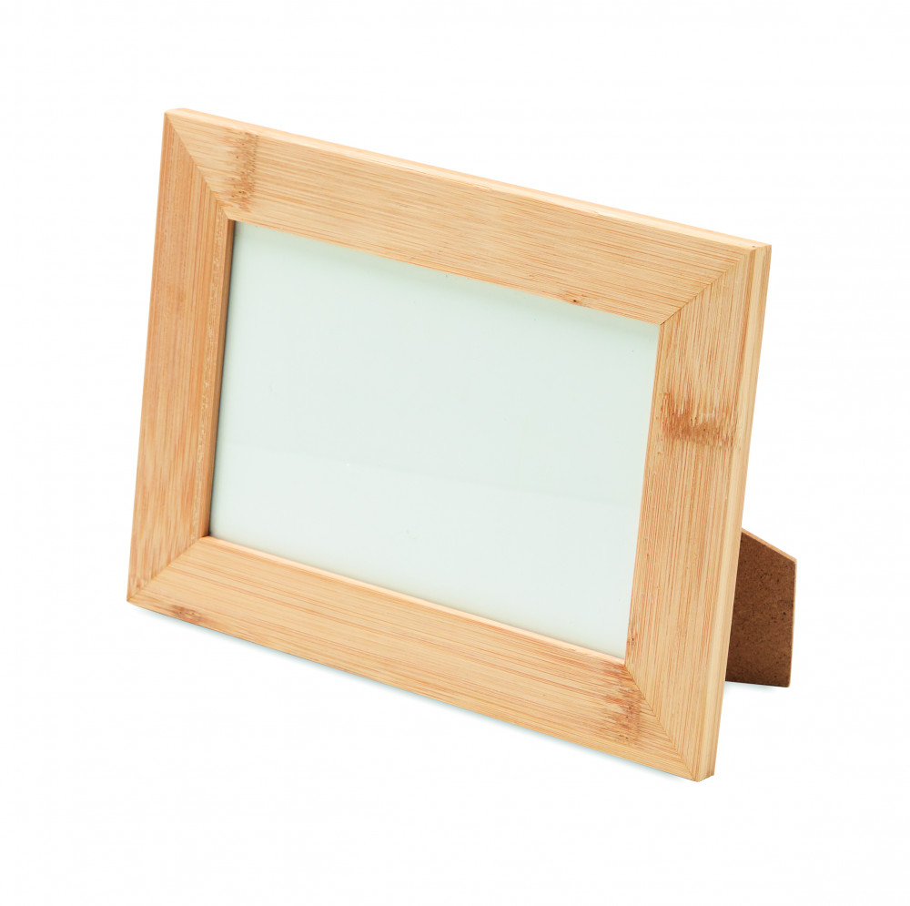 Bambusz fotókeret. Képméret: 15 x 10 cm. Álló és fekvő helyzetben is kitámasztható, valamint falra akasztható. A bambusz természetes anyag, színében, mintázatában és méretében esetenként eltérő lehet.