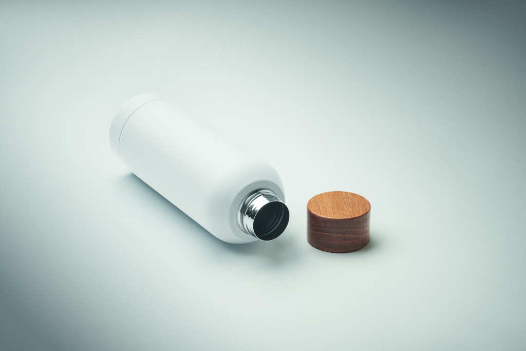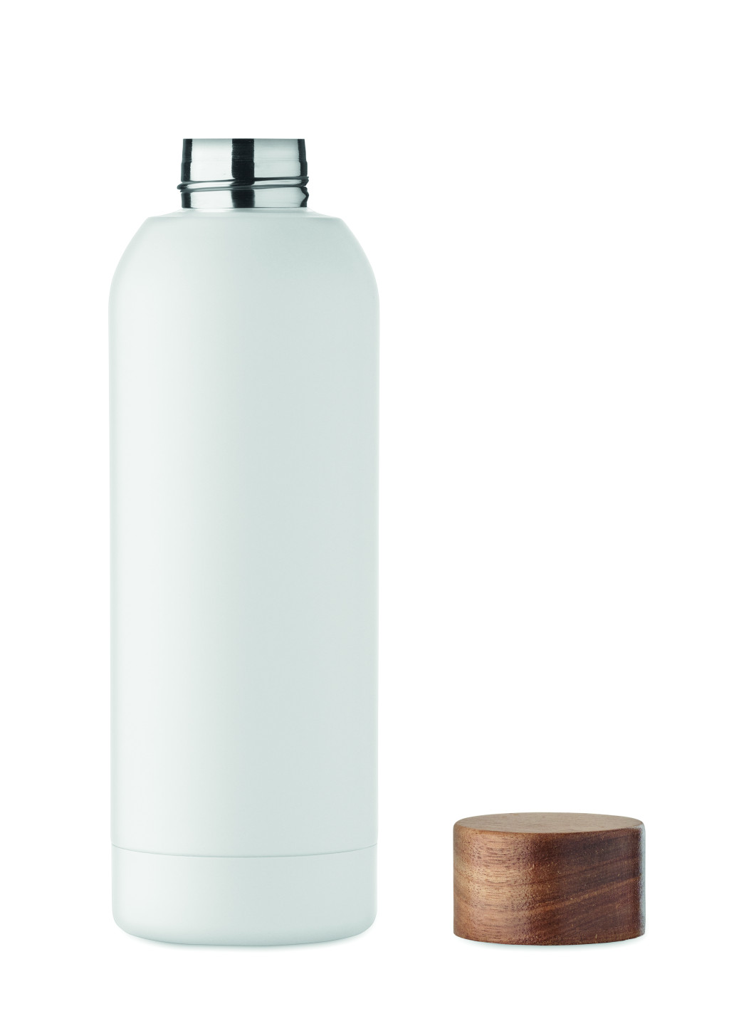 Szimplafalú palack újrahasznosított rozsdamentes acélból (90% újrahasznosított rozsdamentes acél és 10% rozsdamentes acél), gumírozott felülettel, akáciafa fedéllel. Szivárgásmentes. Űrtartalom: 700 ml. Mivel ez egy szimplafalú palack, hőátadás előfordulhat.