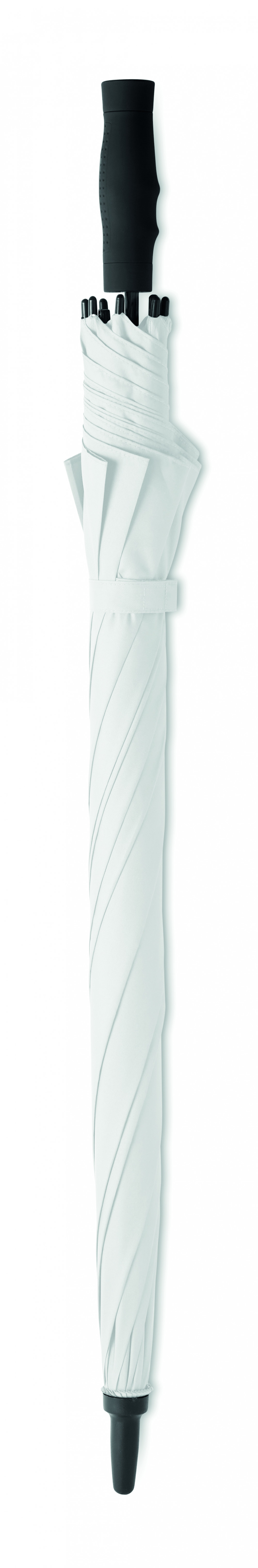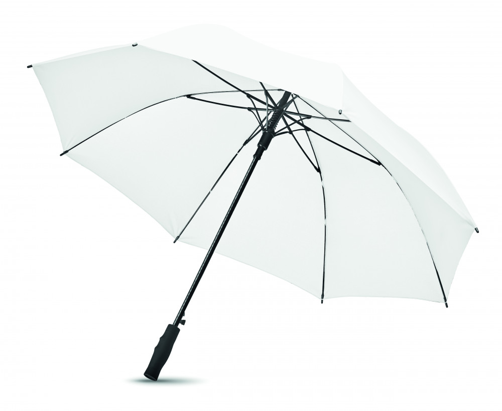 27 colos manuális szélálló esernyő 190T nyersselyem anyagból. Üvegszálas rúd és váz. Fekete műanyag csúcsok. Fekete egyenes gumírozott ABS markolat. Hozzáillő tokban. Manuális záródás.