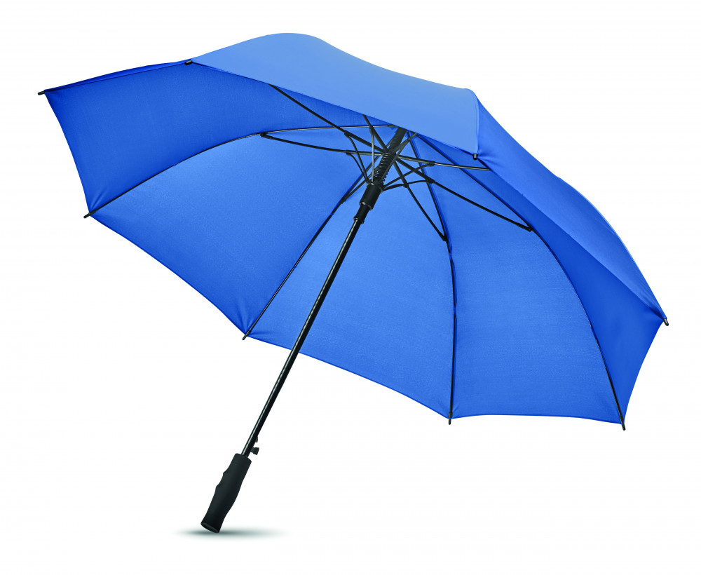 27 colos manuális szélálló esernyő 190T nyersselyem anyagból. Üvegszálas rúd és váz. Fekete műanyag csúcsok. Fekete egyenes gumírozott ABS markolat. Hozzáillő tokban. Manuális záródás.