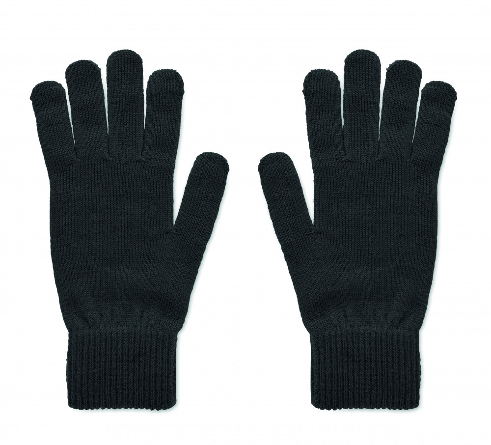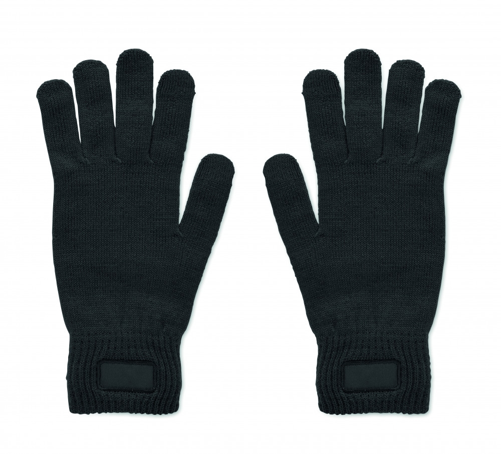 Kötött kesztyű puha, rugalmas RPET poliészterből, felvarróval.