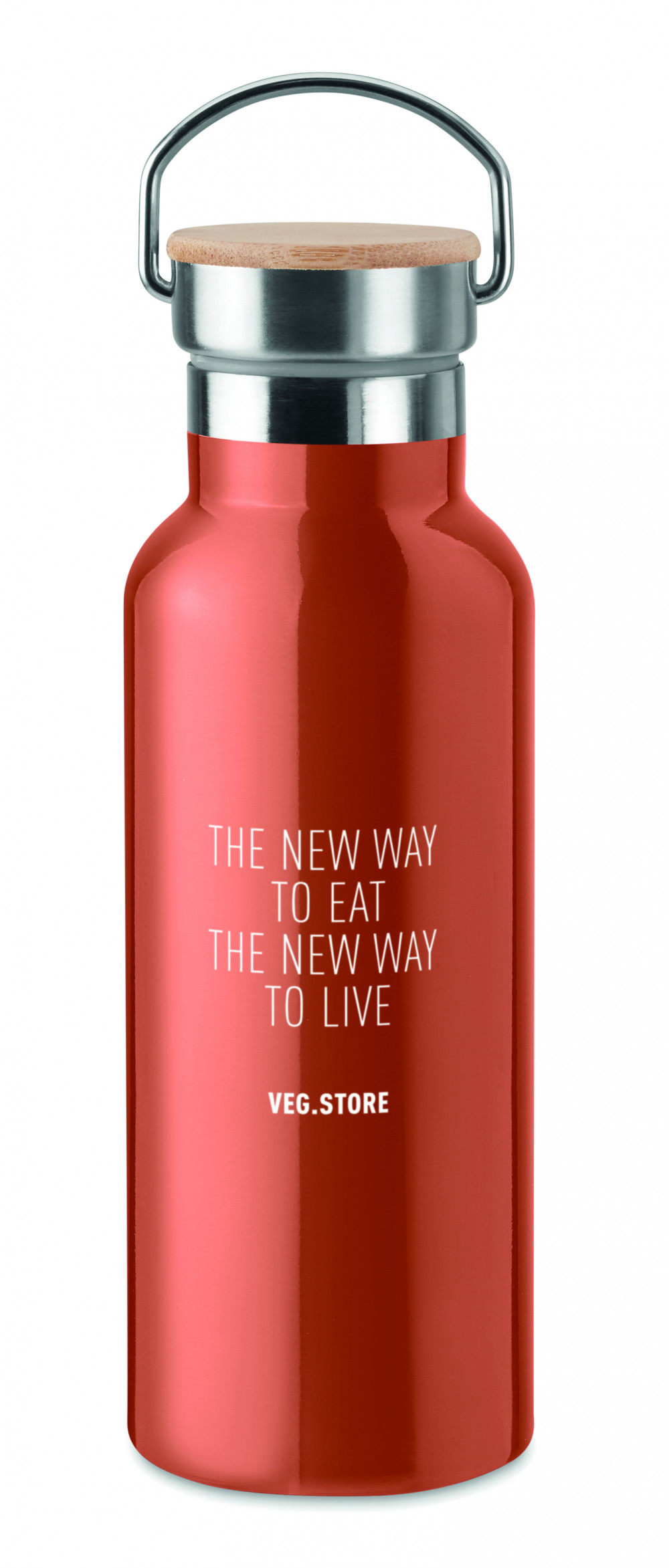 Duplafalú rozsdamentes acél termosz 500 ml űrtartalommal. Fém fogantyús bambusz kupakkal. A szublimációs nyomtatás csak a fehér színű terméken érhető el. Szivárgásmentes. A bambusz természetes anyag, színében, mintázatában és méretében esetenként eltérő lehet.