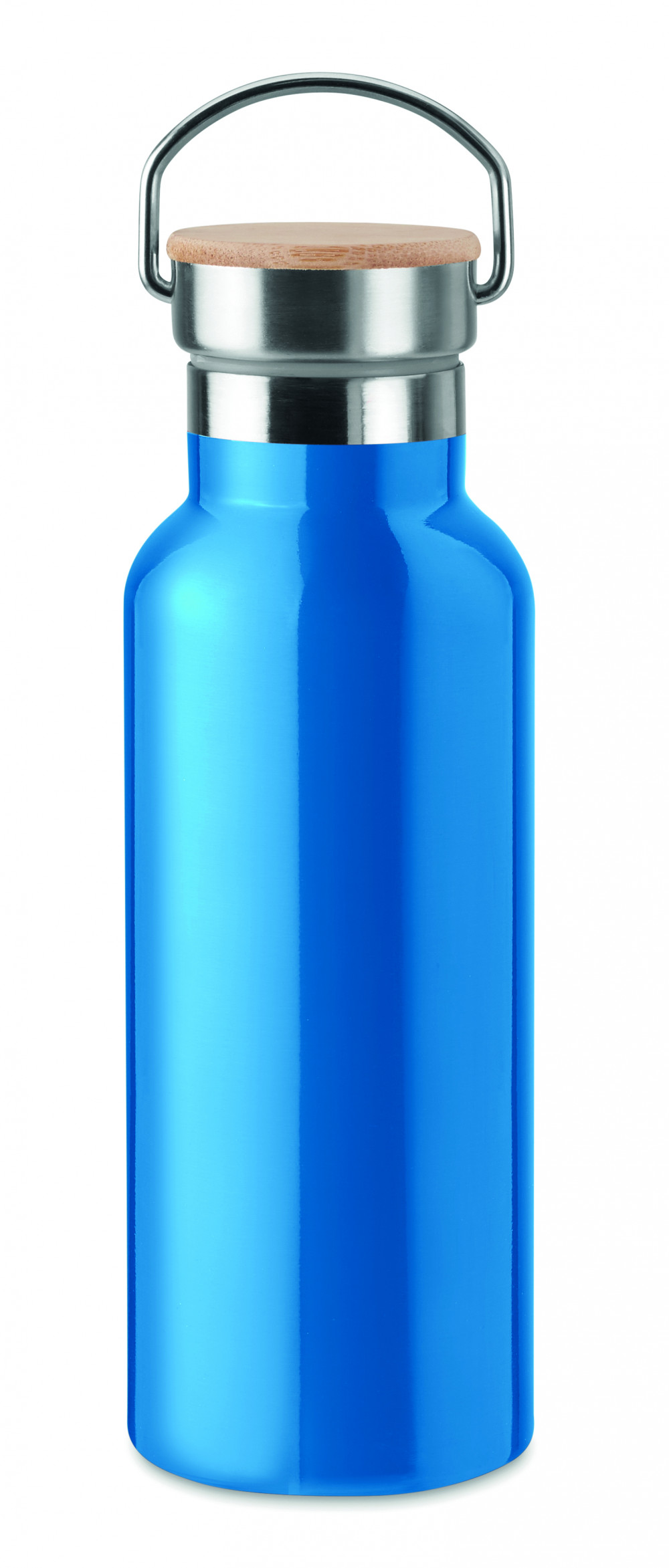 Duplafalú rozsdamentes acél termosz 500 ml űrtartalommal. Fém fogantyús bambusz kupakkal. A szublimációs nyomtatás csak a fehér színű terméken érhető el. Szivárgásmentes. A bambusz természetes anyag, színében, mintázatában és méretében esetenként eltérő lehet.