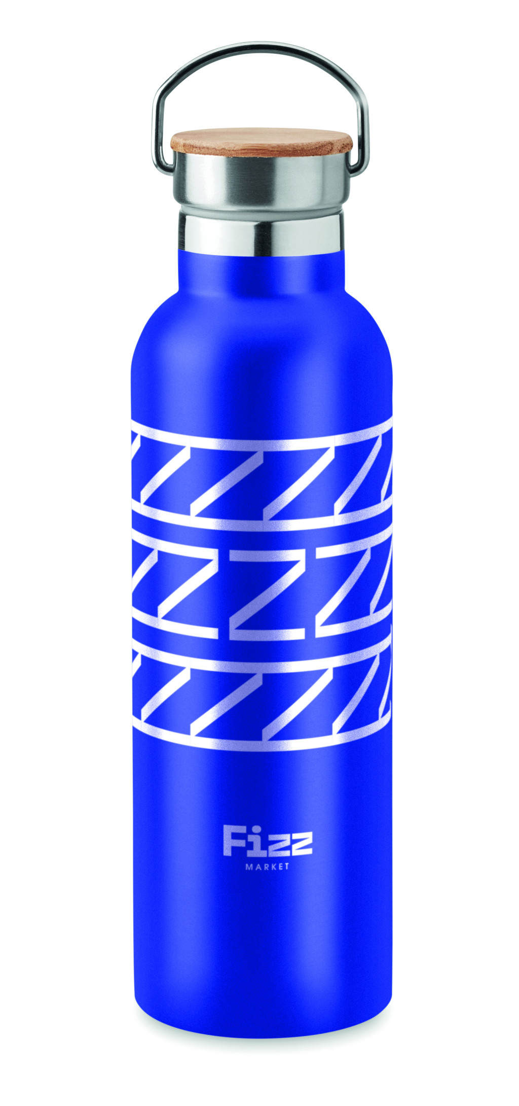 Duplafalú rozsdamentes acél termosz fém fogantyús bambusz kupakkal. Űrtartalom: 750 ml. Szivárgásmentes. A bambusz természetes anyag, színében, mintázatában és méretében esetenként eltérő lehet.
