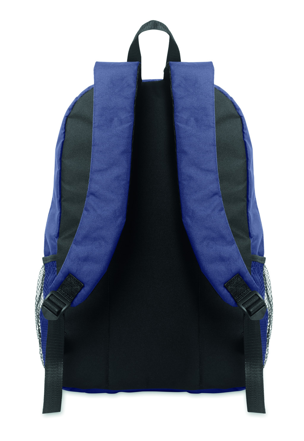 Hátizsák 600D RPET poliészterből, dekoratív zsinórral és cipzáras elülső zsebbel. Mindkét oldalán hálós zsebekkel.