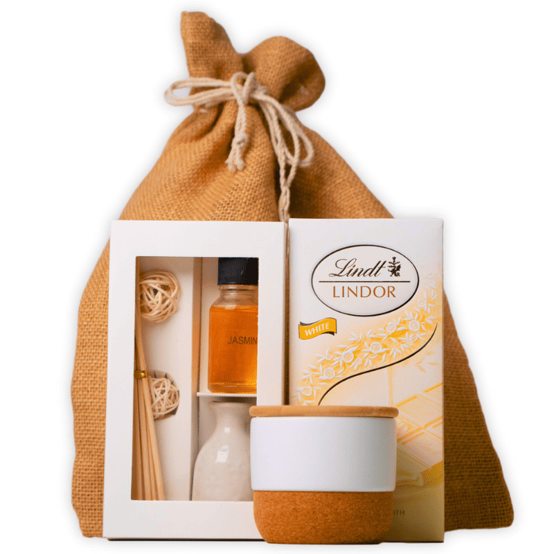 Boldogság, amely kívül-belül sugárzik! A "Happiness Inside" csomagban a prémium fehércsokoládé, egy illatos aroma szett és egy különleges parafa talpú gyertya teremt meghitt hangulatot. Egy csomag, amely minden érzéket kényeztet!