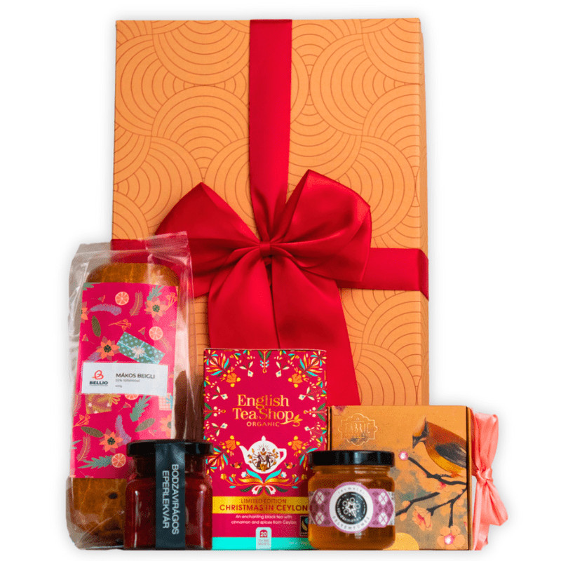 Ajándékozz melegséget a "Holiday Hugs" csomaggal! A karácsonyi bio tea, a mákos bejgli és a bodzavirágos eperlekvár garantálja az ünnepi ízeket, míg a madaras díszdobozos cseresznyedrazsé megédesíti a pillanatokat. Egy különleges összeállítás, amely a szívet is megmelengeti!