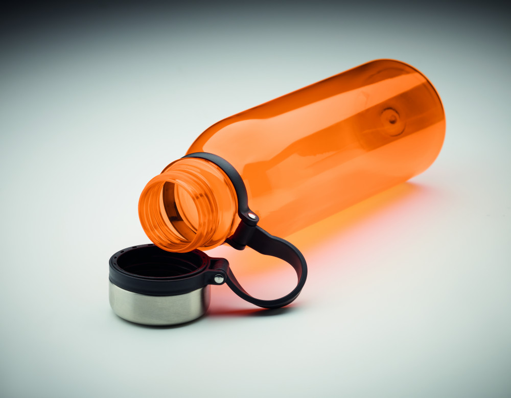 RPET kulacs rozsdamentes acél kupakkal, a könnyű szállítást biztosító TPR gumi pánttal. BPA mentes. Szivárgásmentes. Űrtartalom: 780 ml. Nem alkalmas szénsavas italokhoz.