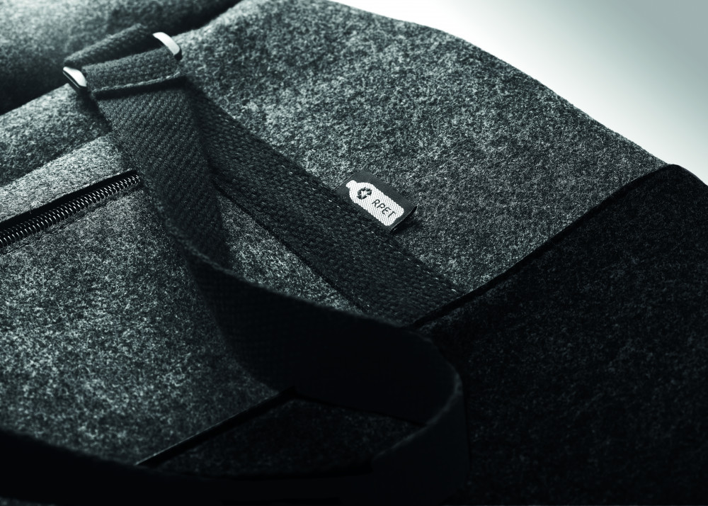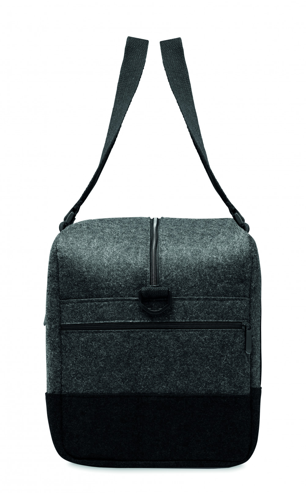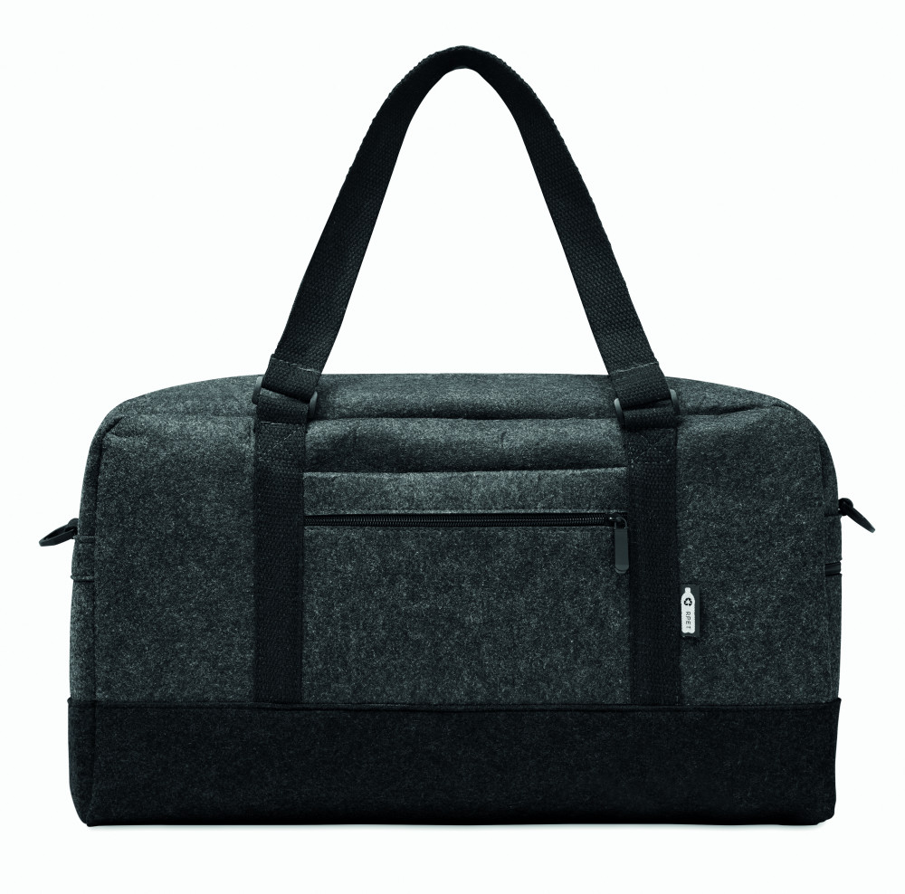 RPET filc sport/fitnesz vagy hétvégi táska cipzáras elülső zsebbel, vászon hordfülekkel és levehető, állítható vállpánttal.