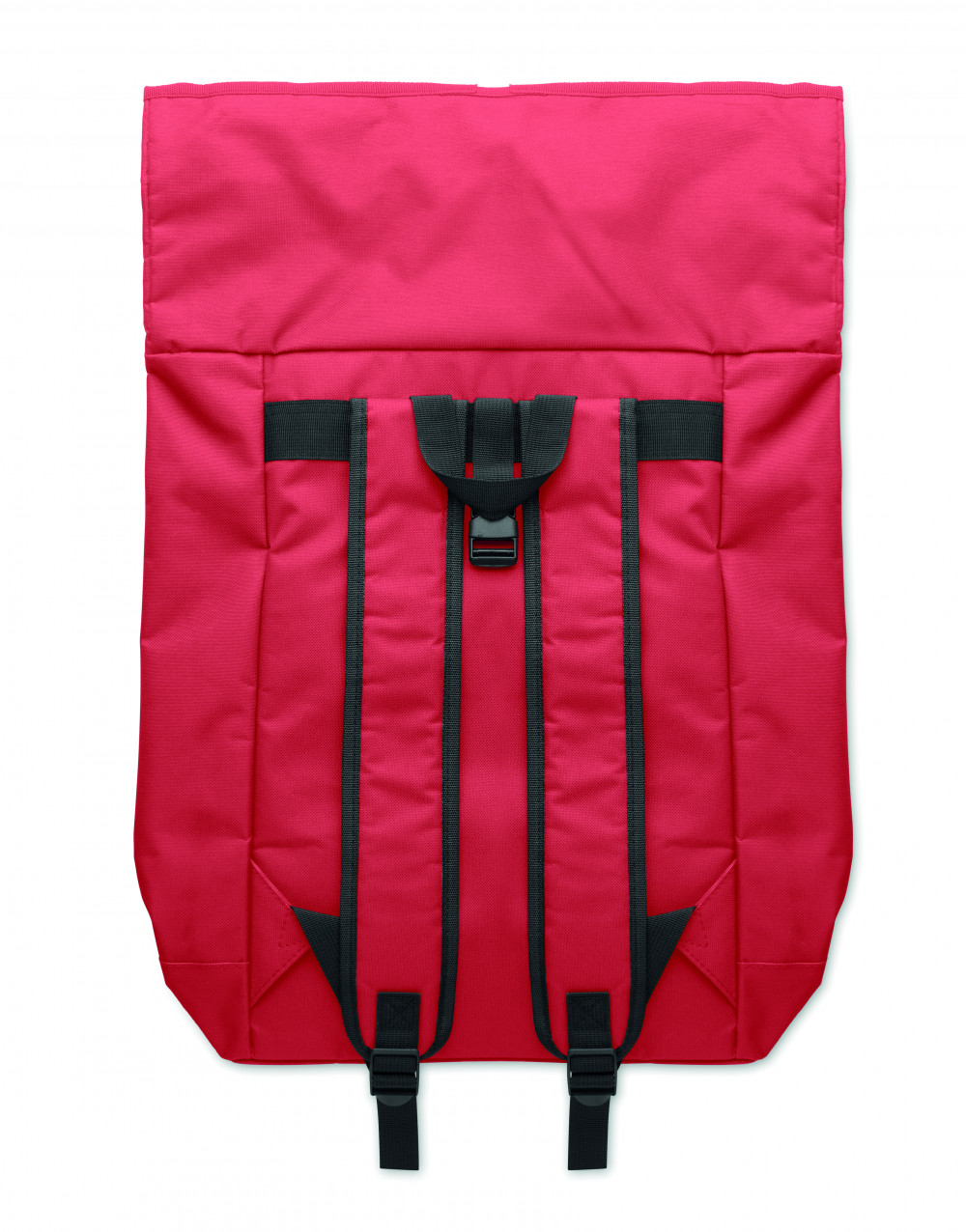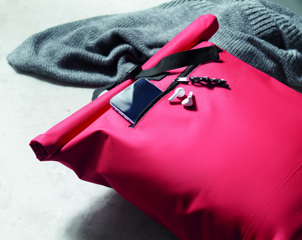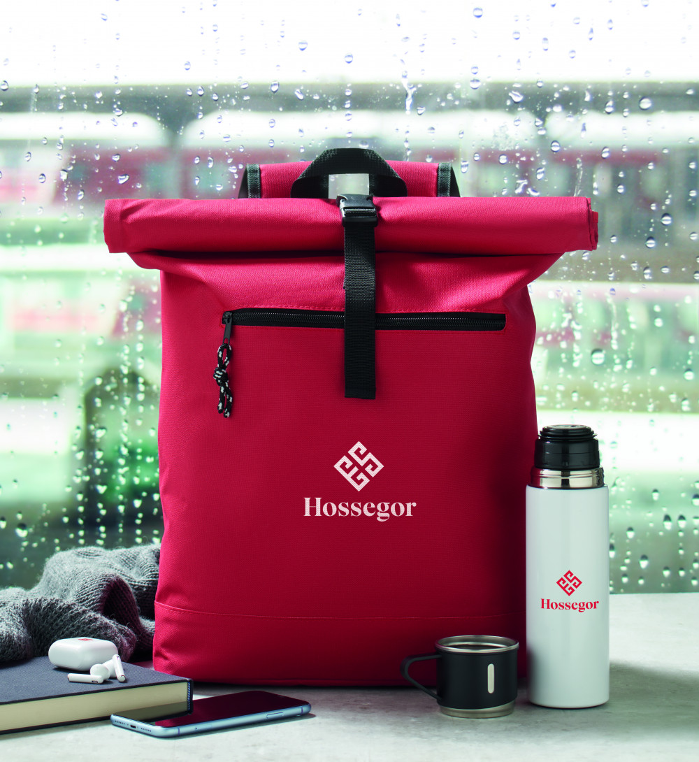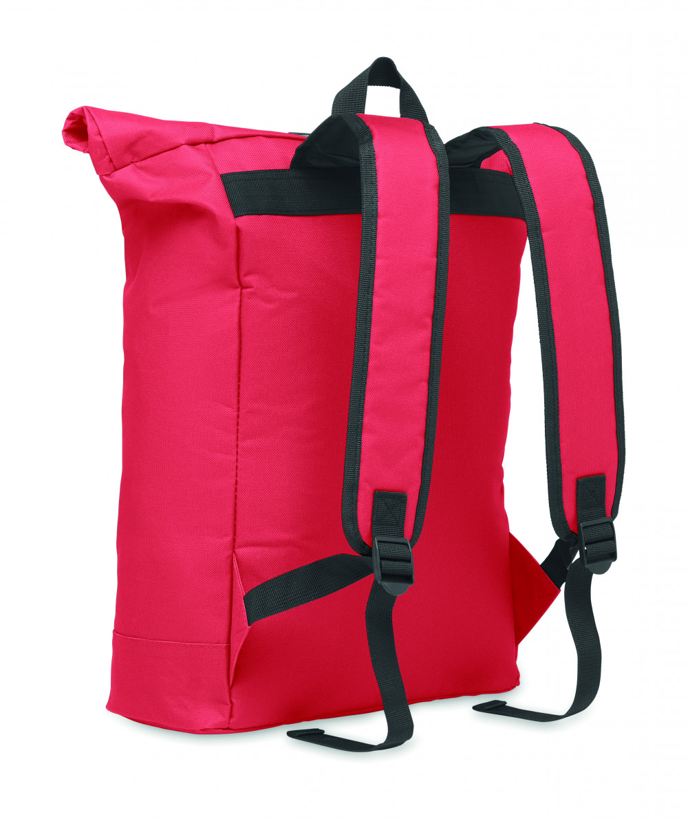 15 colos roll top csavart záródású laptop hátizsák 600D poliészterből, párnázott háttal és megerősített aljjal. Cipzáras elülső zseb. 210D bélés.
