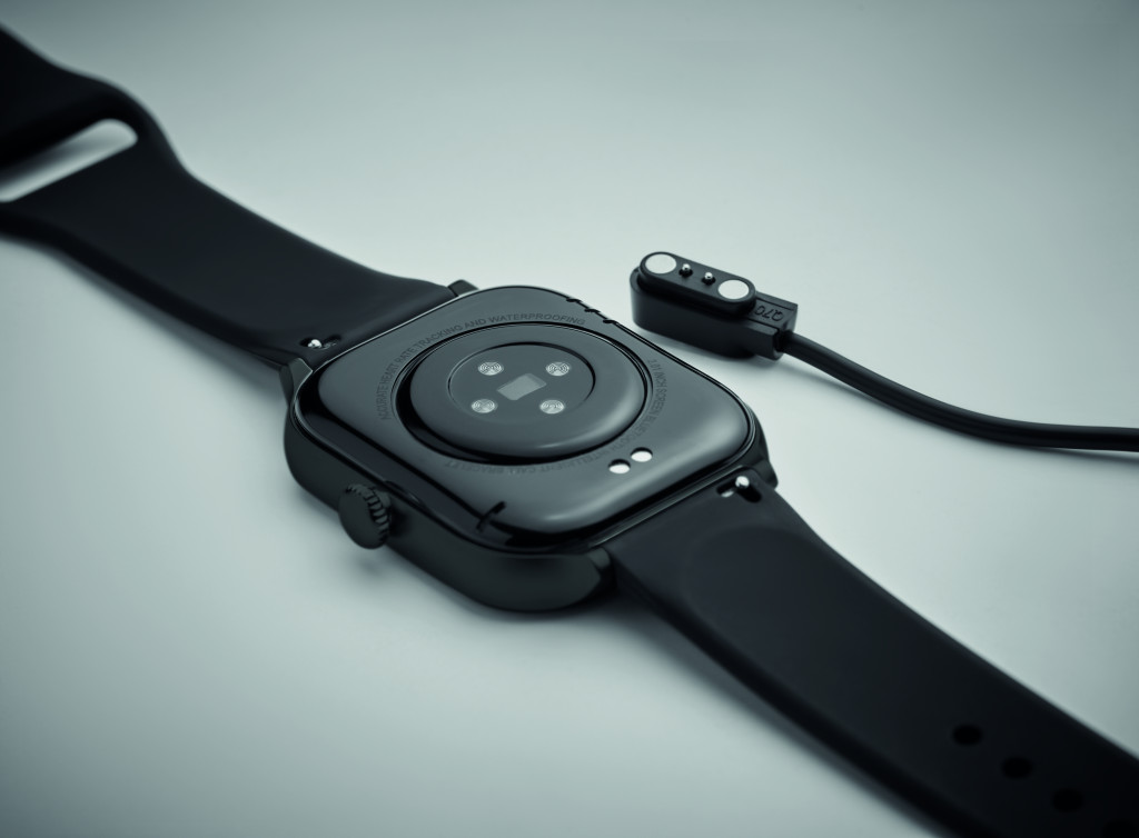 5.4 vezeték nélküli egészségügyi okosóra (health watch) cink ötvözetből, szilikon szíjjal. 2,01 colos érintős LCD kijelző. Újratölthető 180 mAh lítium-polimer elem. iOS és Android rendszerre egyaránt ingyenesen elérhető alkalmazással (HryFine) működik.