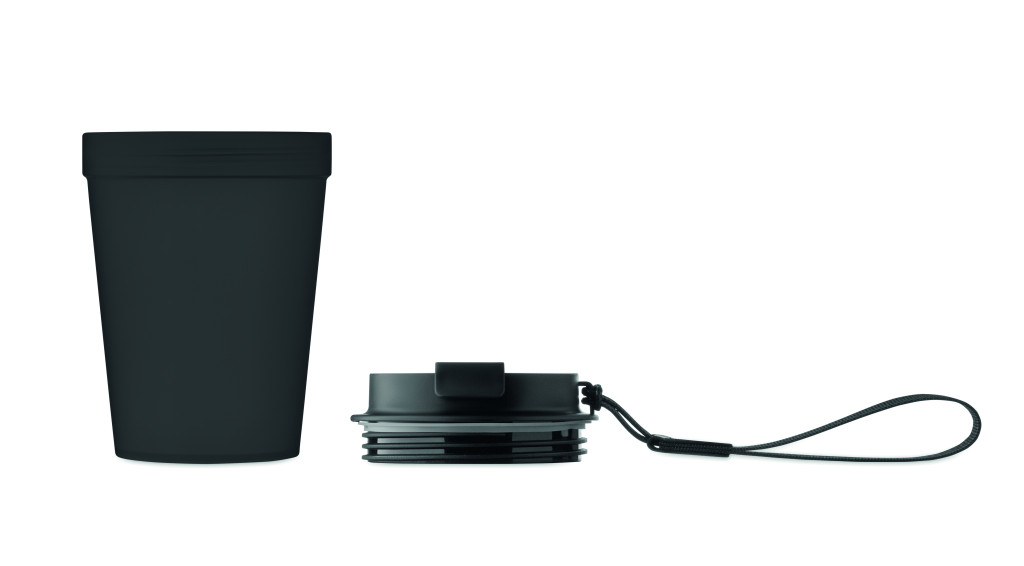 Szimplafalú pohár PP-ből, RPET poliészter pánttal. Szivárgásmentes. Űrtartalom: 300 ml. Mivel ez egy szimplafalú pohár, hőátadás előfordulhat.