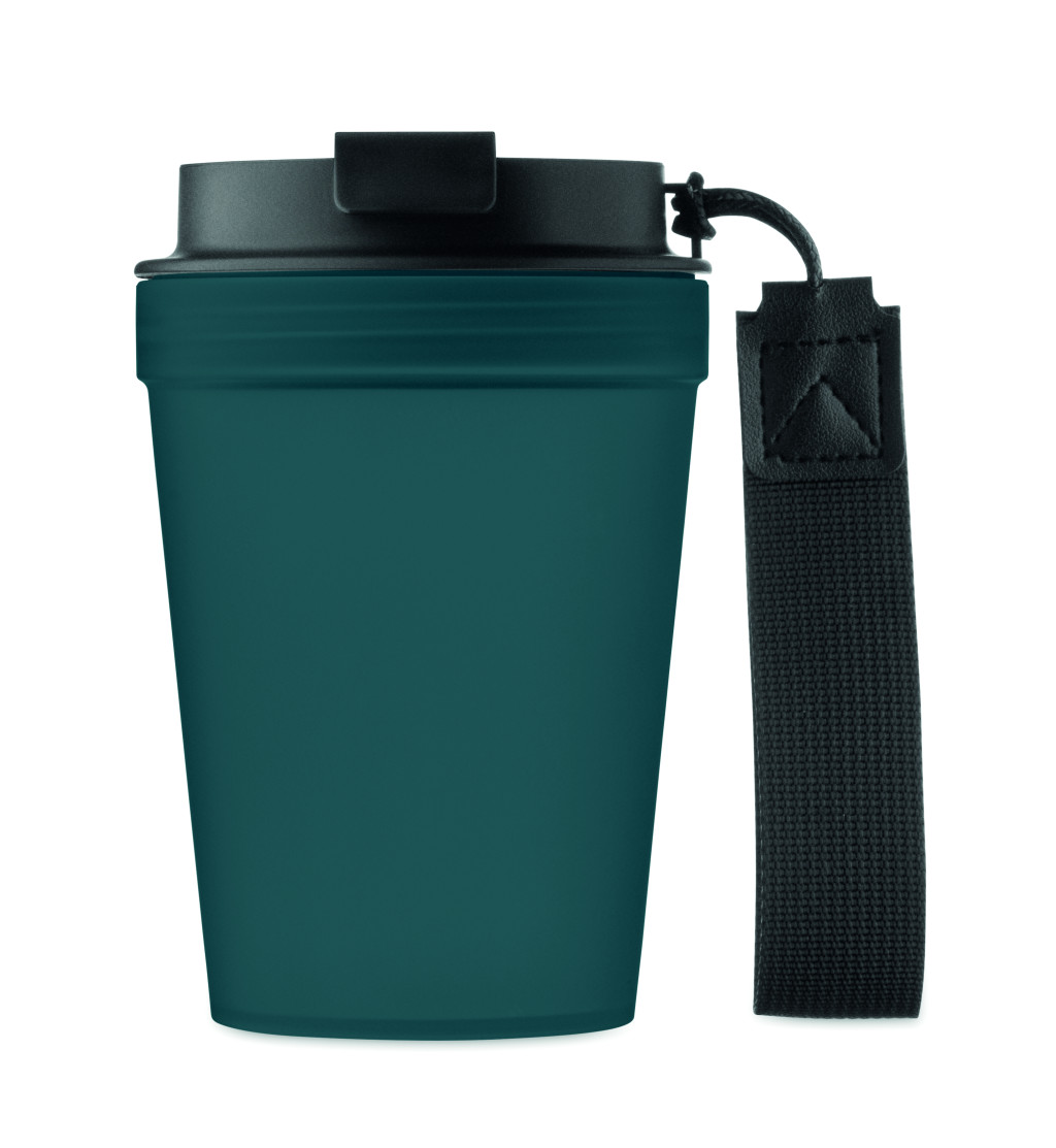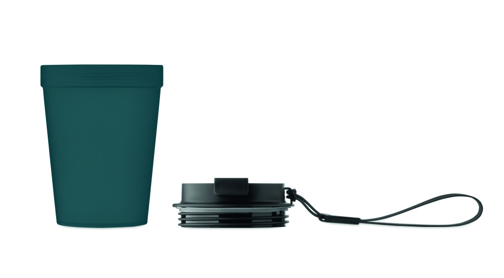 Szimplafalú pohár PP-ből, RPET poliészter pánttal. Szivárgásmentes. Űrtartalom: 300 ml. Mivel ez egy szimplafalú pohár, hőátadás előfordulhat.
