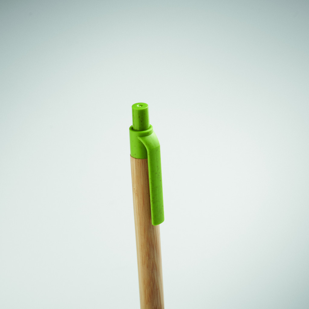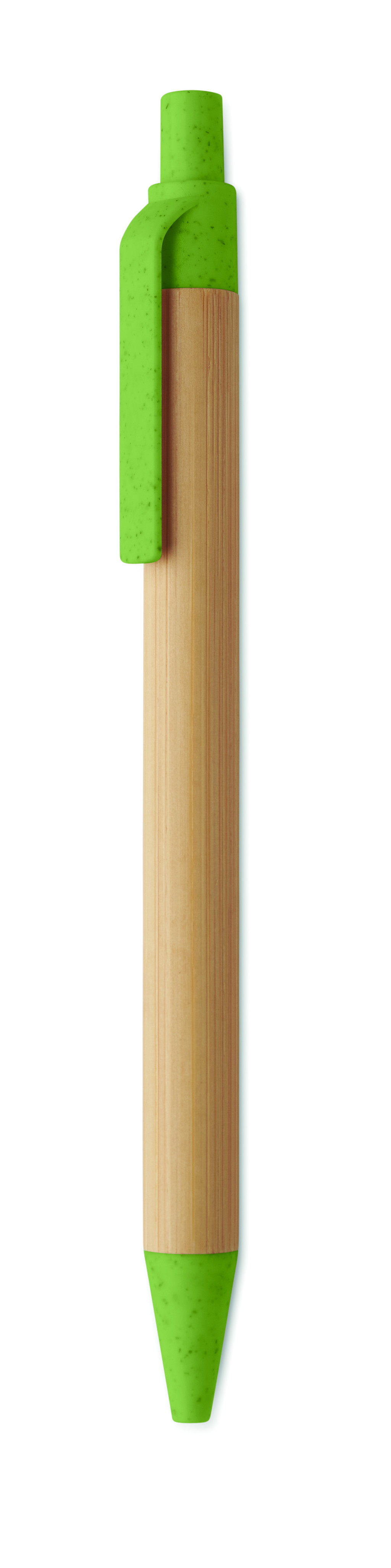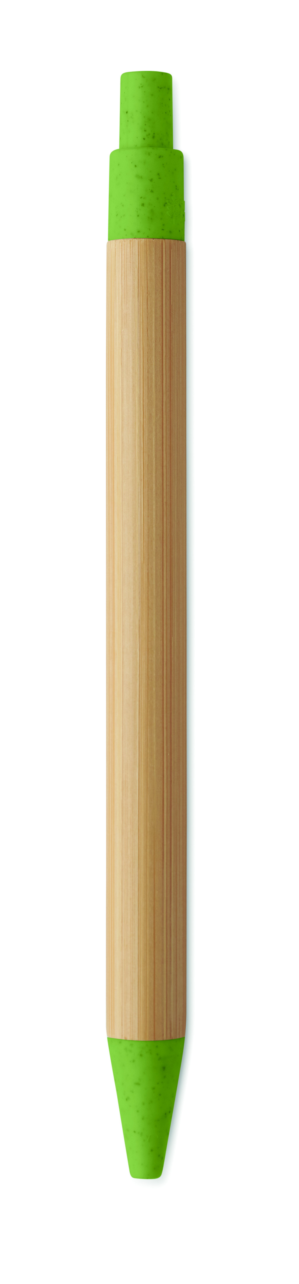 Nyomógombos golyóstoll bambusz tolltesttel, 50% búzaszalma és 50% ABS műanyag szerelvényekkel. Kéken író betéttel.