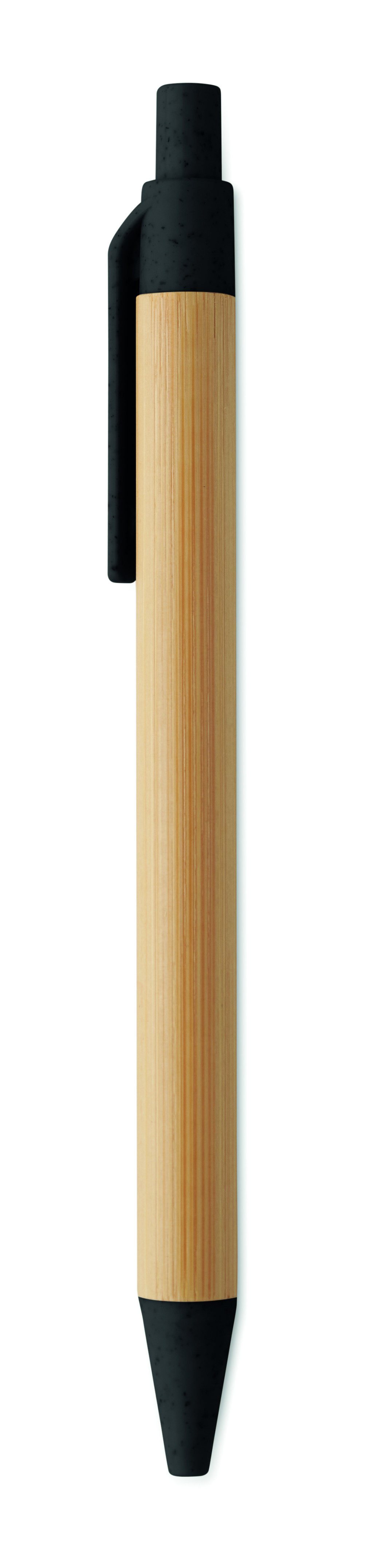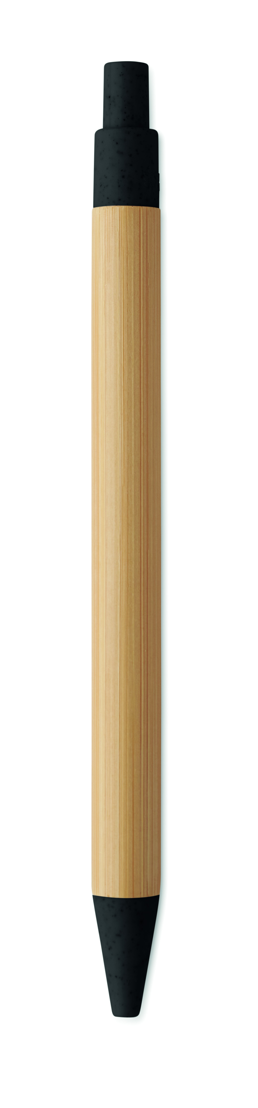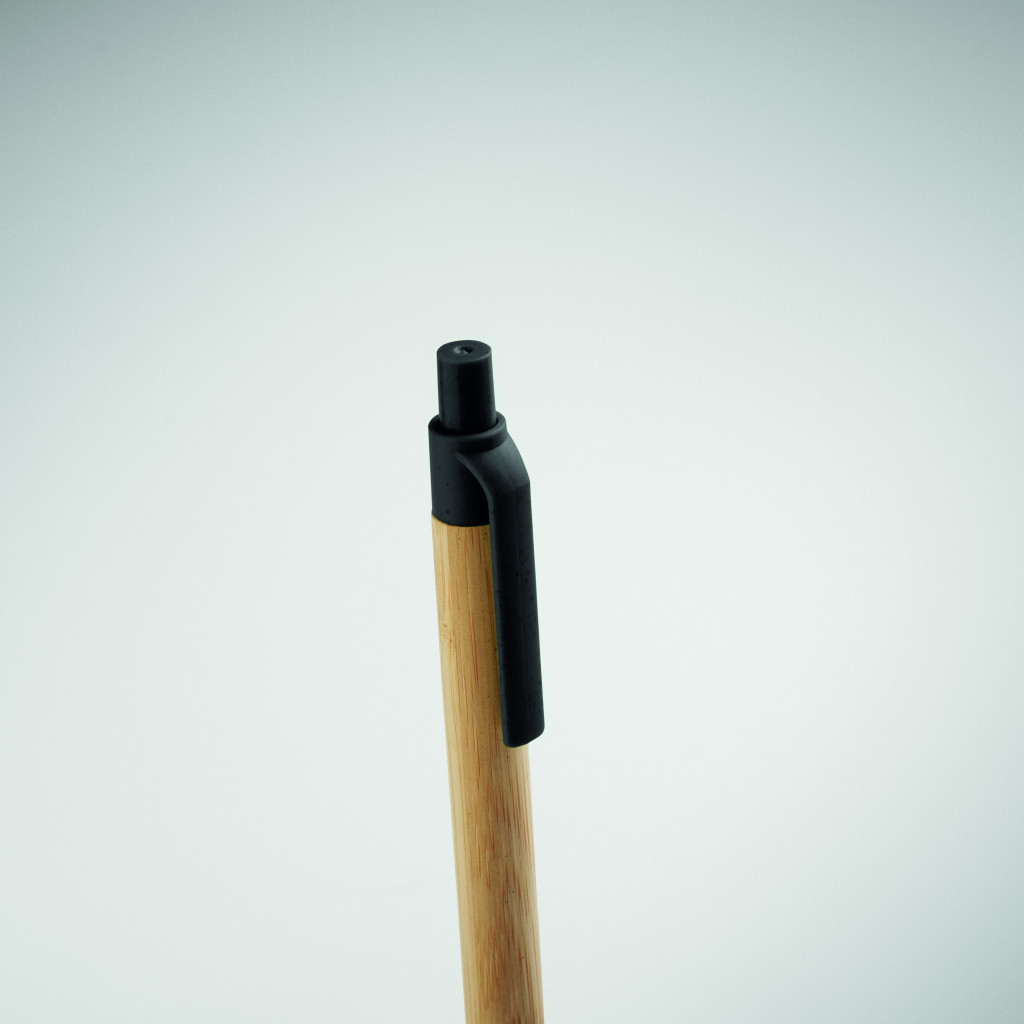 Nyomógombos golyóstoll bambusz tolltesttel, 50% búzaszalma és 50% ABS műanyag szerelvényekkel. Kéken író betéttel.
