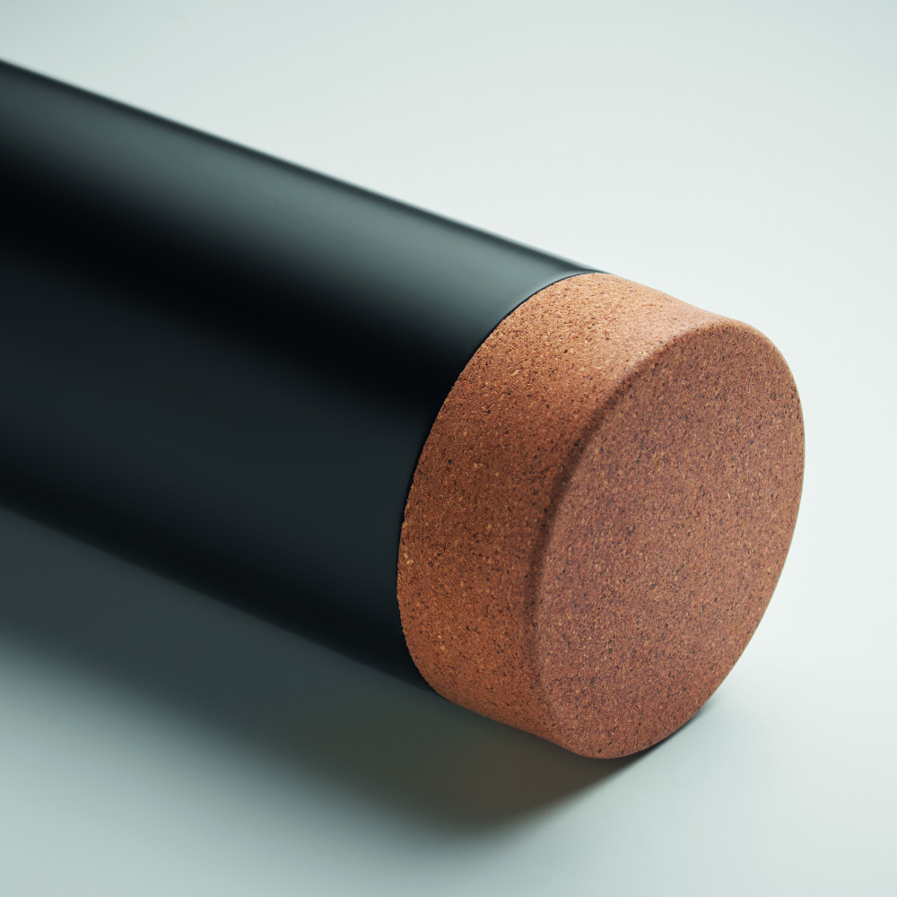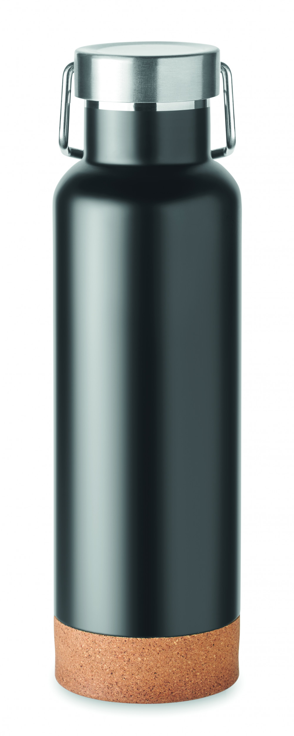 Duplafalú termoszpalack újrahasznosított rozsdamentes acélból, fogantyús fedéllel és parafa részletekkel ellátott alappal. Szivárgásmentes. Űrtartalom: 500 ml. (90% újrahasznosított rozsdamentes acél és 10% rozsdamentes acél).