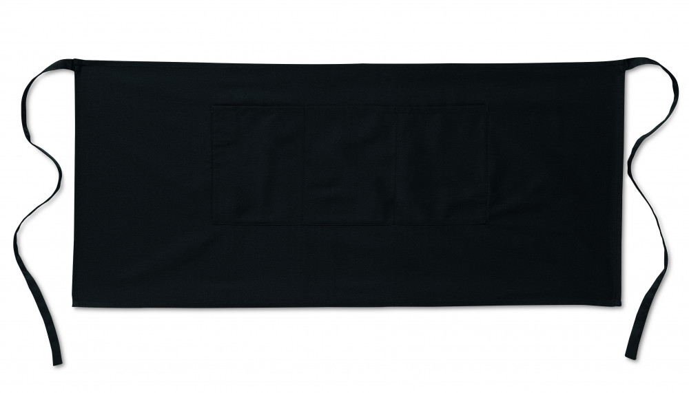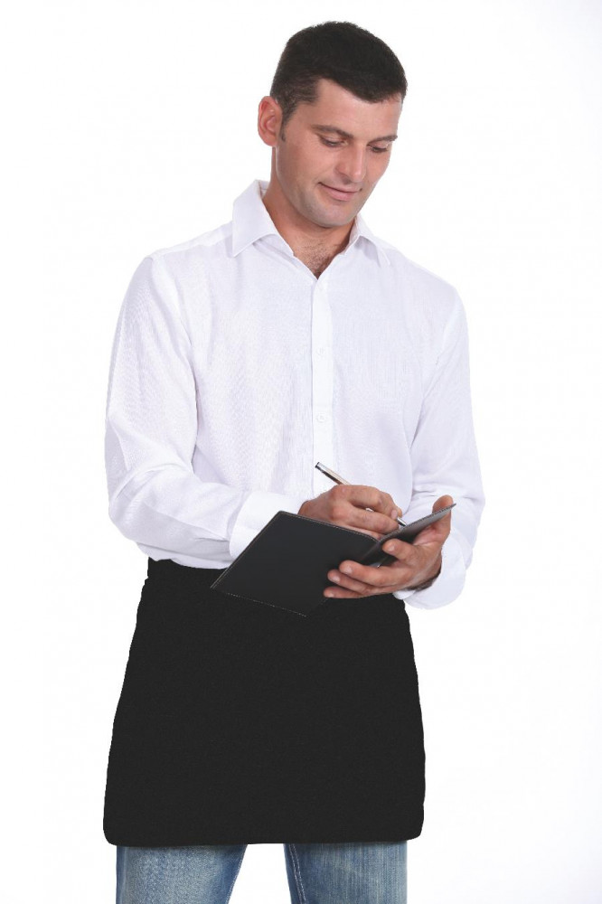 Rövid konyhai félkötény. 195 g vastag anyag, 90% poliészter, 10% pamut.
