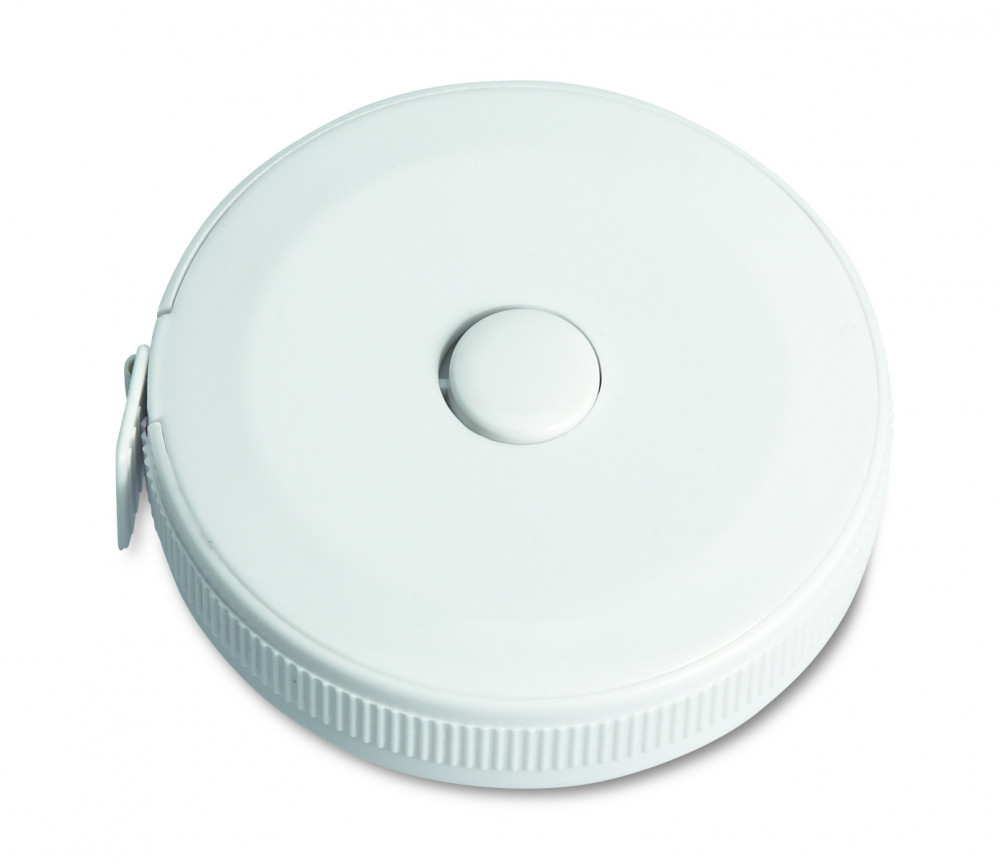 1 méteres kerek ABS mérőszalag / szabócenti. Nyomógombbal engedhető ki és húzható vissza. Centiméter és col.