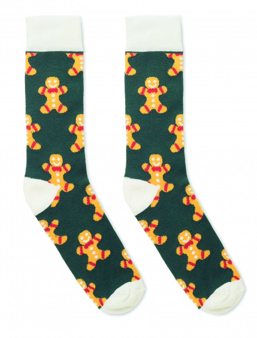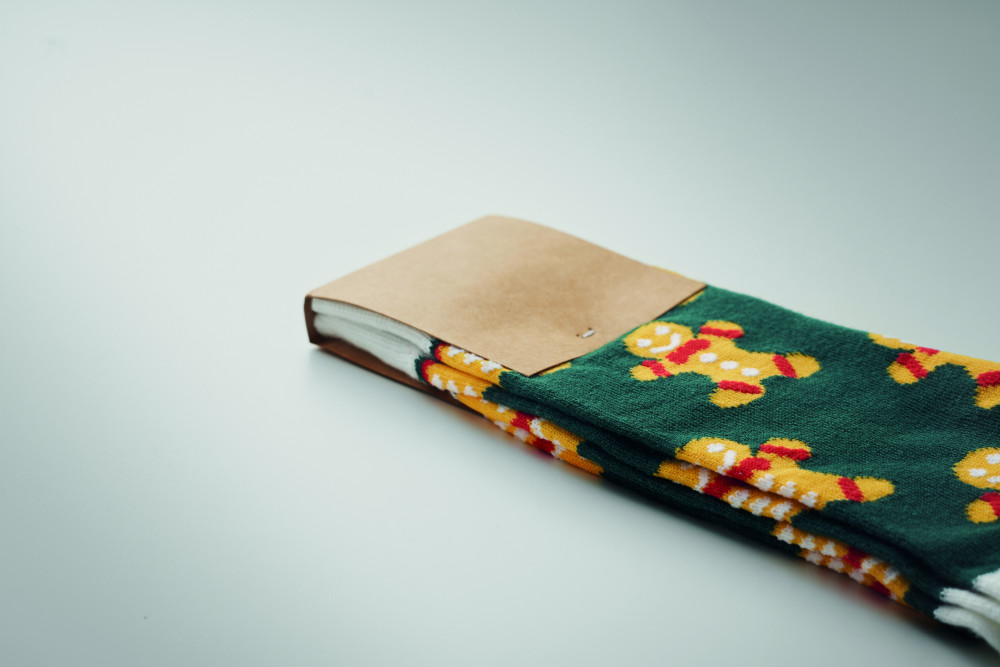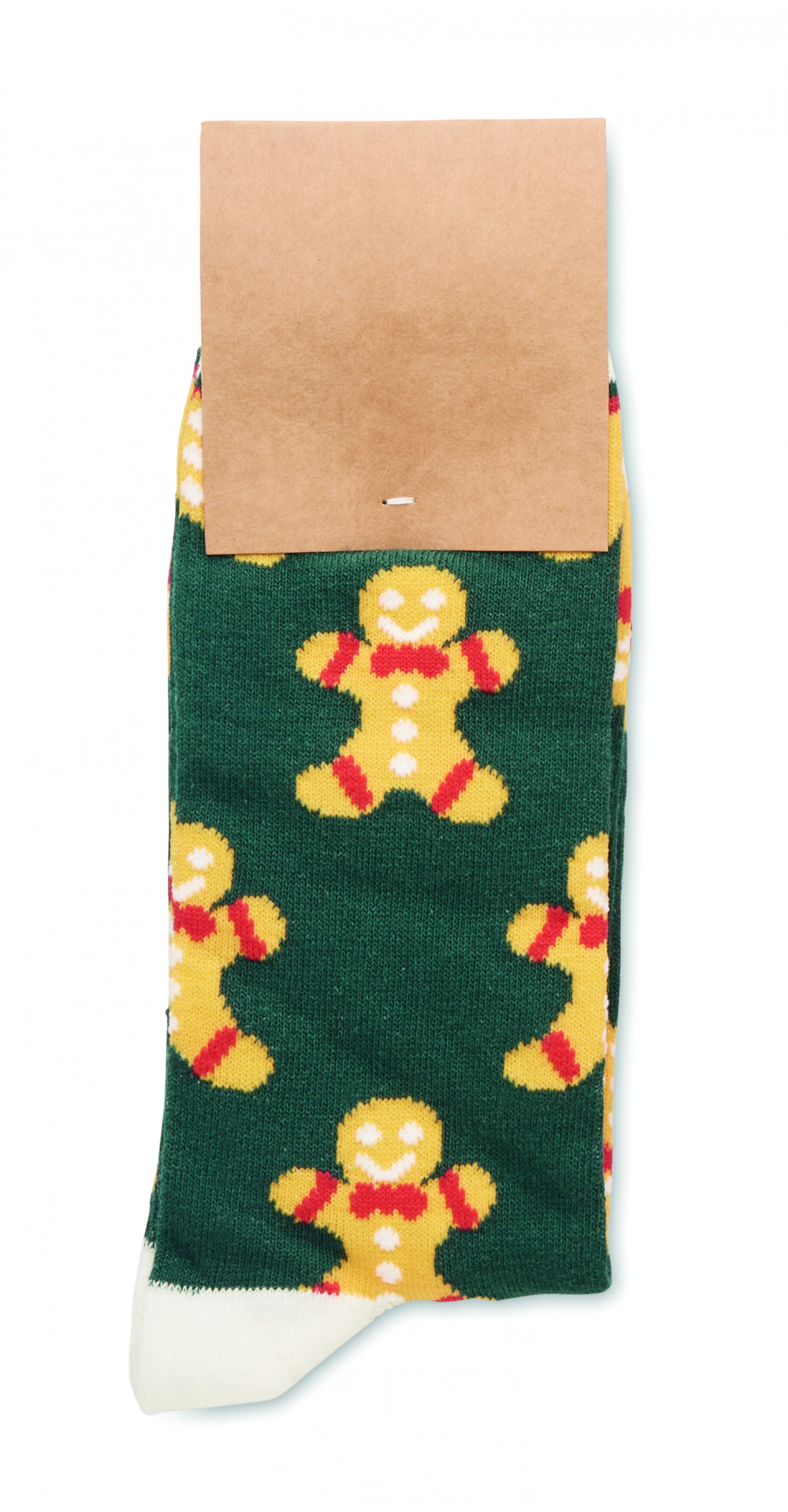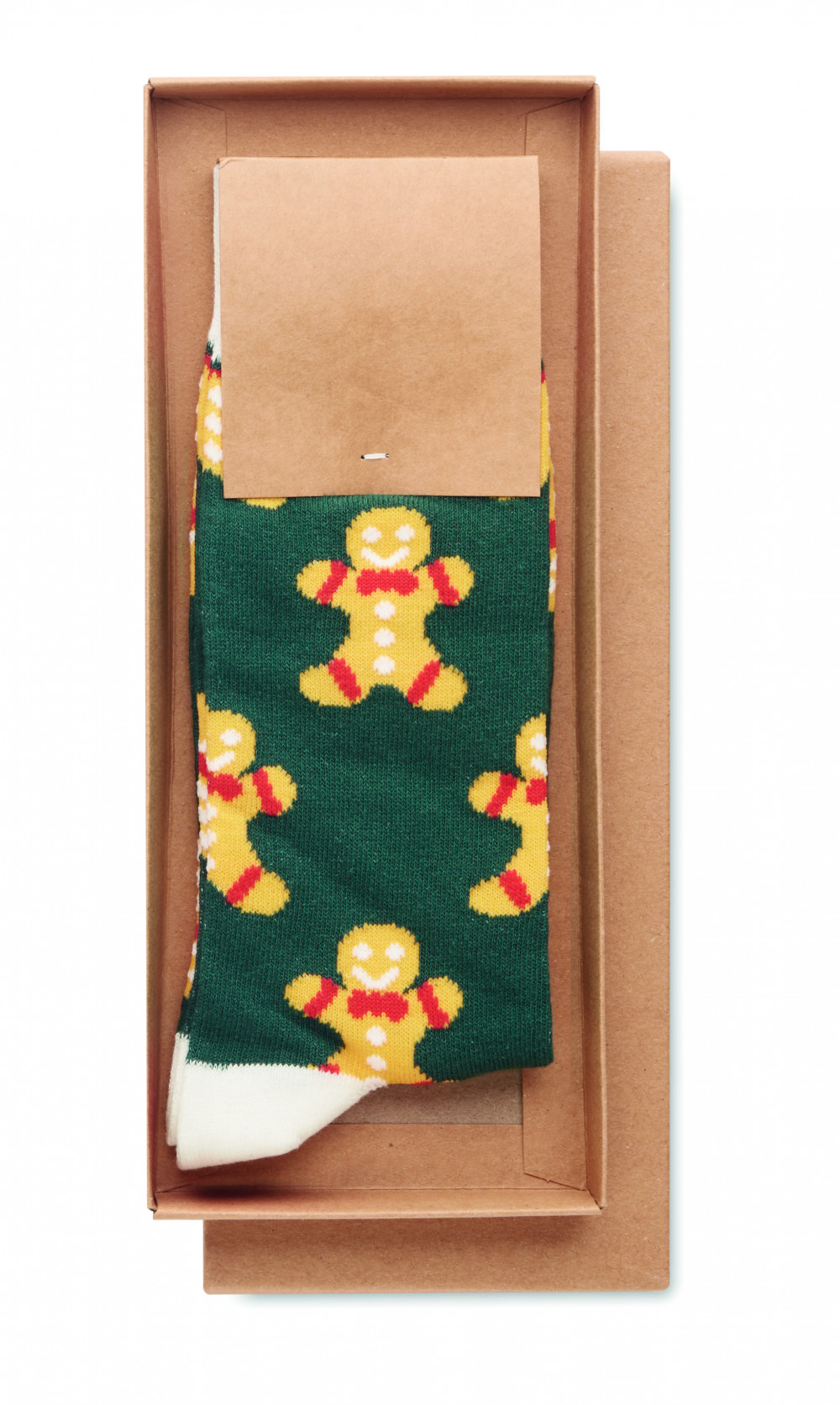 Ünnepi mintás zokni 75% pamut, 23% RPET poliészter és 2% spandex anyagból. Ajándékdobozban. L méret = 43-46.