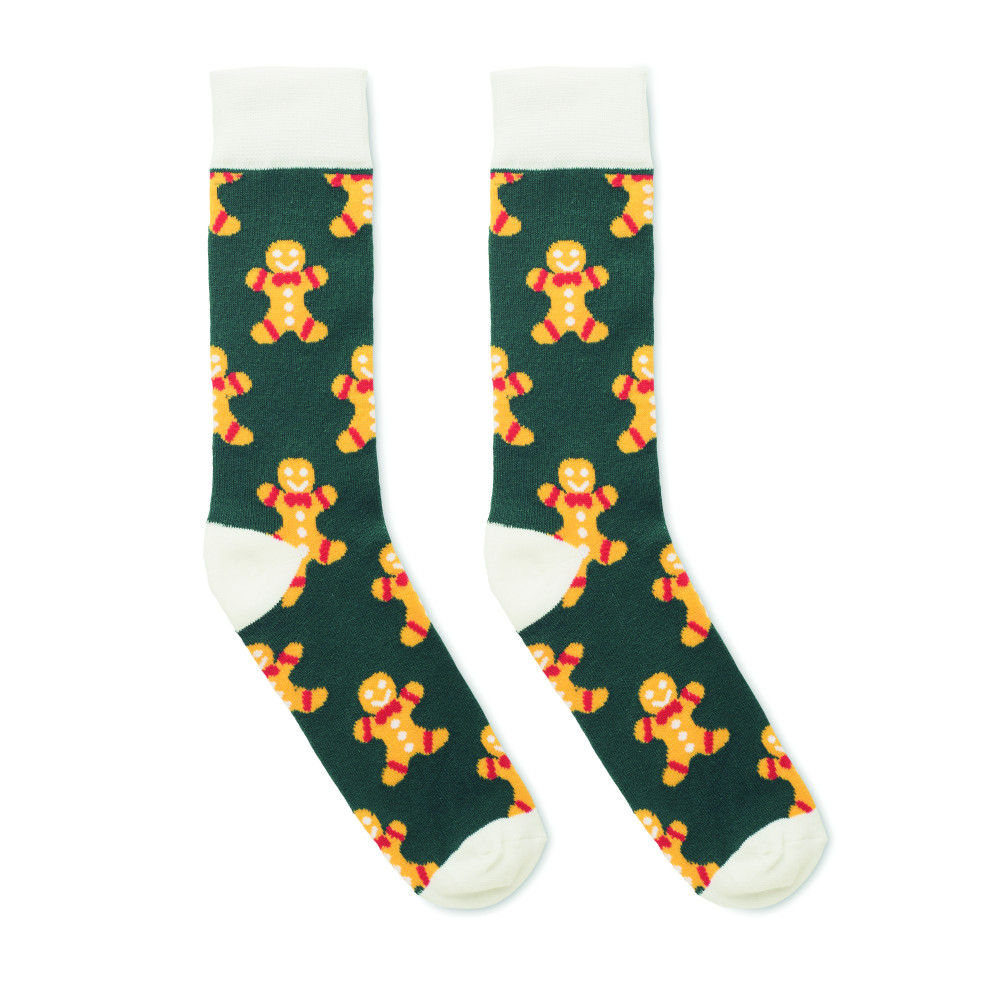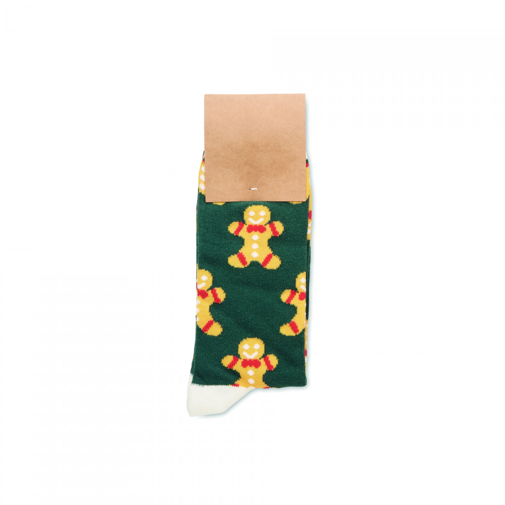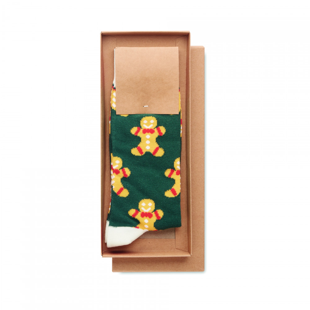 Ünnepi mintás zokni 75% pamut, 23% RPET poliészter és 2% spandex anyagból. Ajándékdobozban. M méret = 38-42.