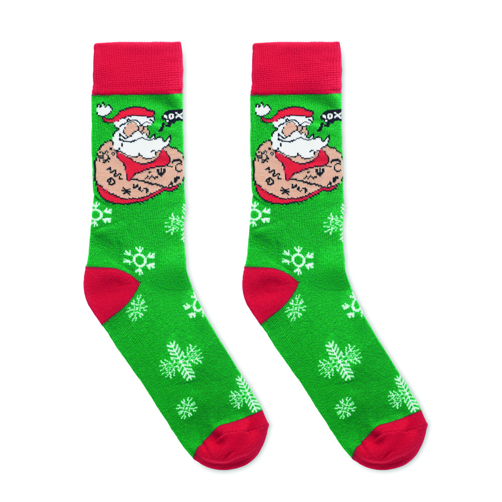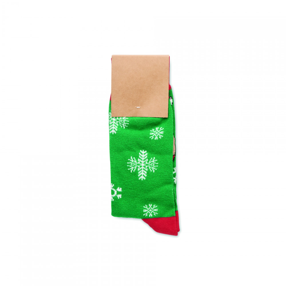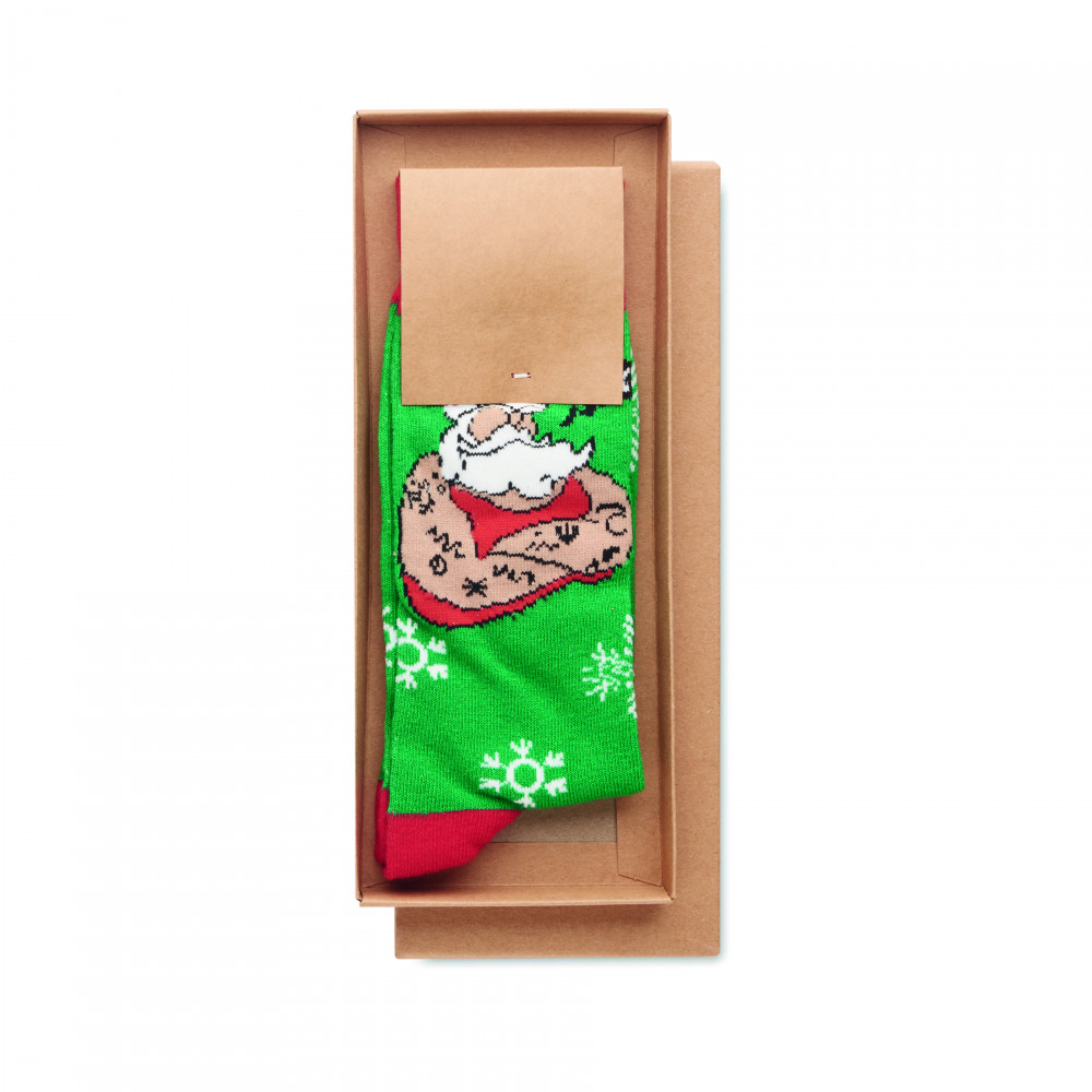 Ünnepi mintás zokni 75% pamut, 23% RPET poliészter és 2% spandex anyagból. Ajándékdobozban. M méret = 38-42.