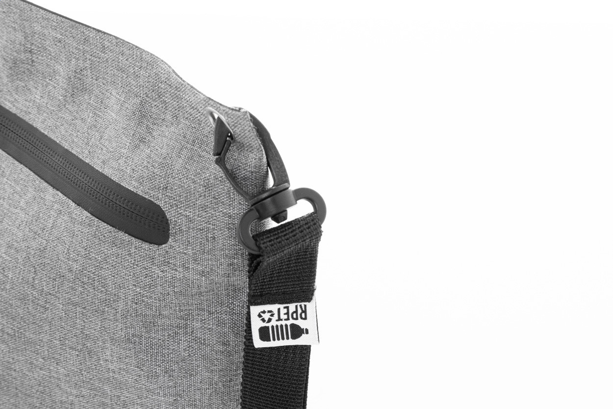 Vízálló, cipzáras kozmetikai táska 300D RPET poliészterből, karabineres csuklópánttal. Megkülönböztető RPET címkével.
