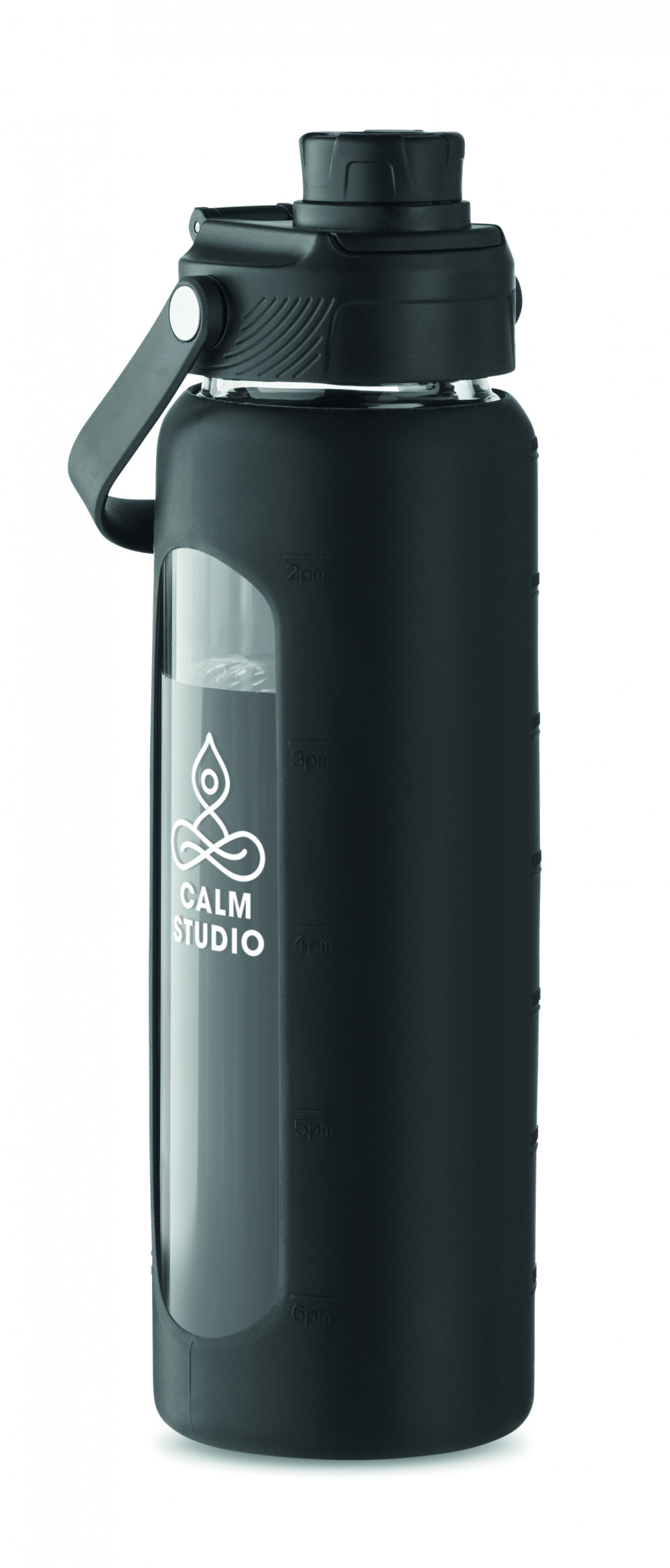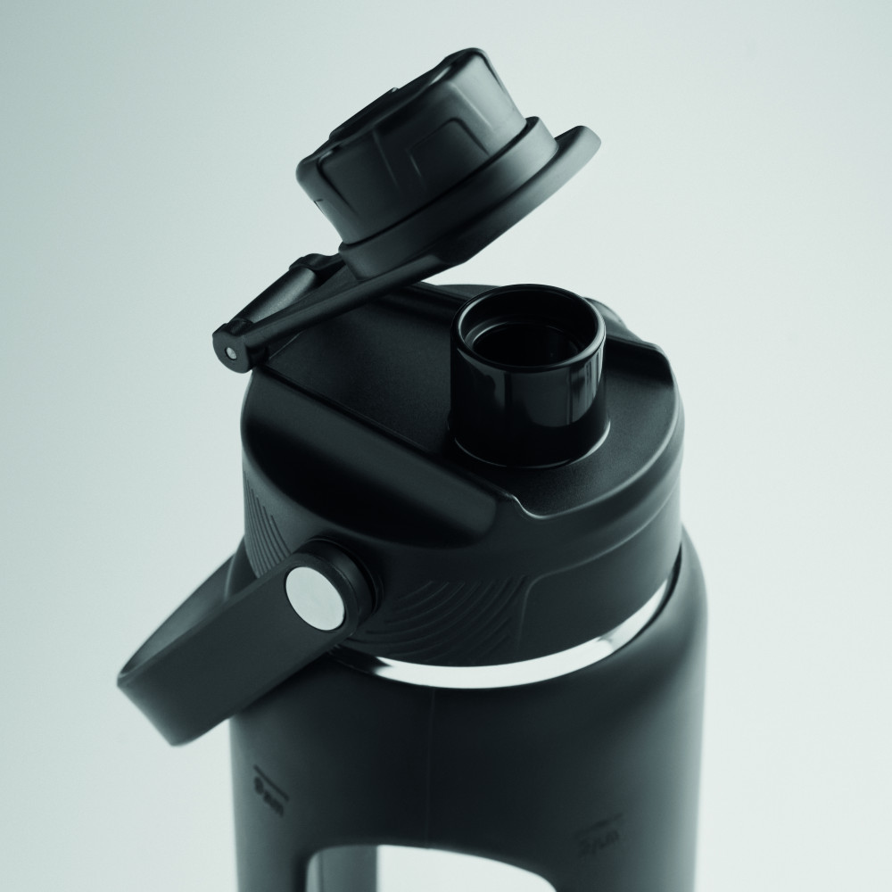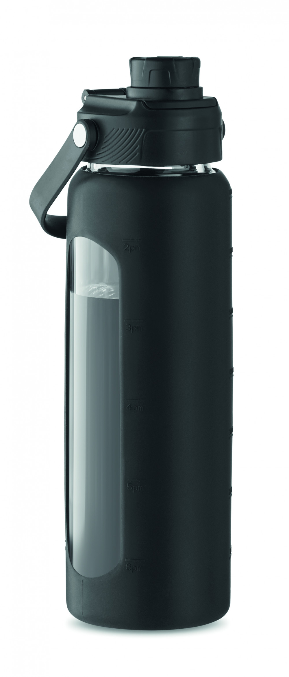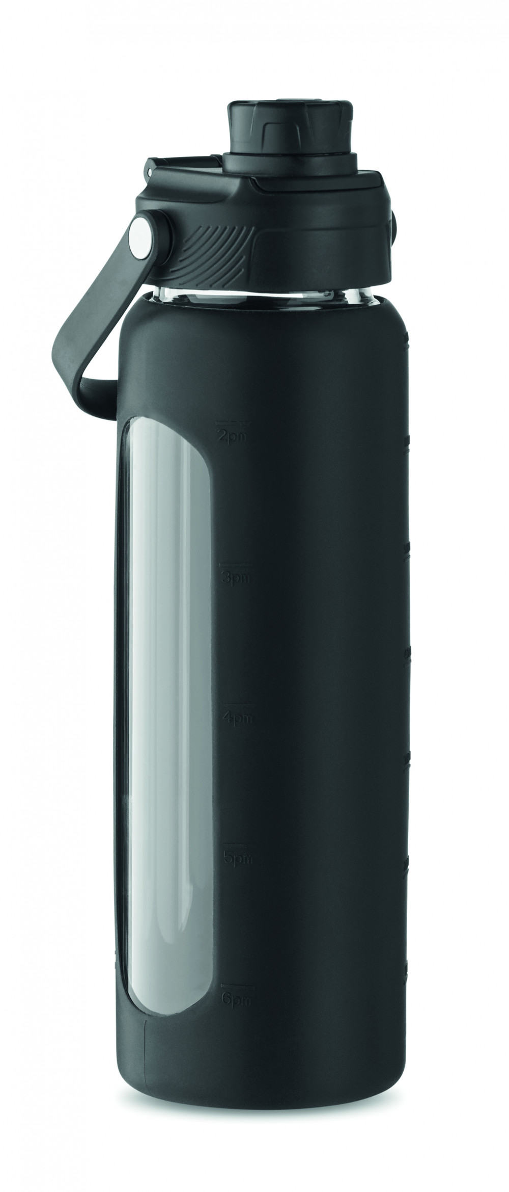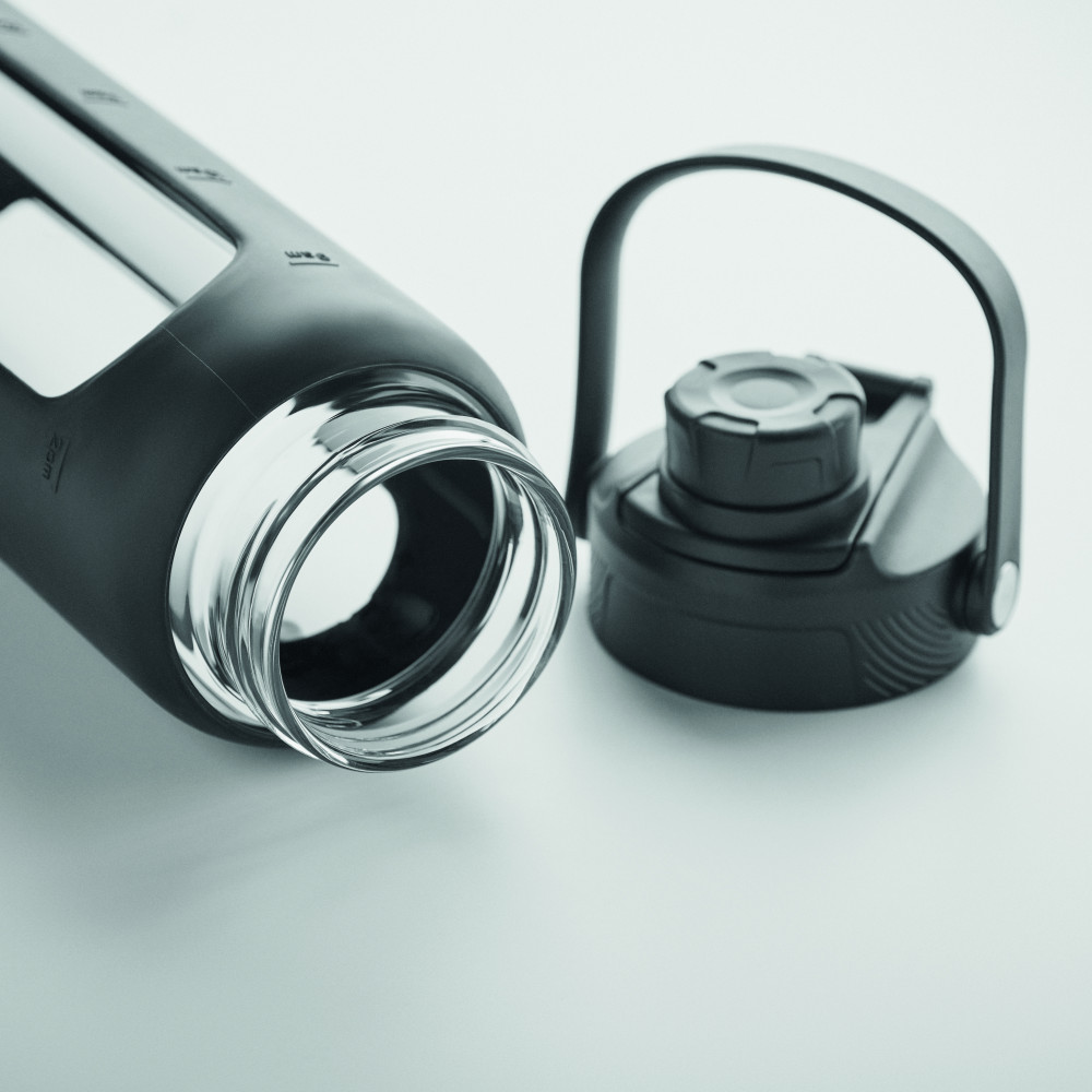 Boroszilikát üveg palack ablakos szilikon védőtokban, PP fedéllel, hordozófogantyúval. Szivárgásmentes. Űrtartalom: 750 ml.