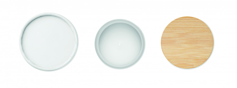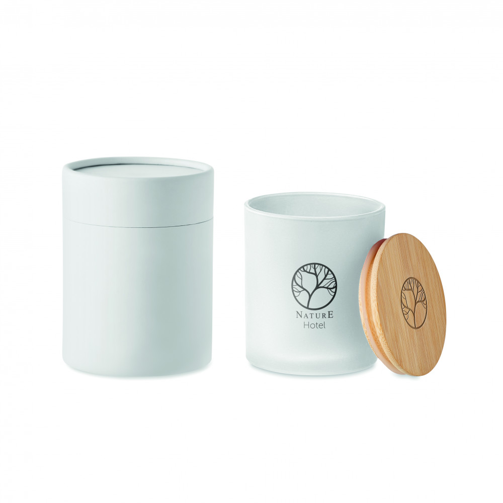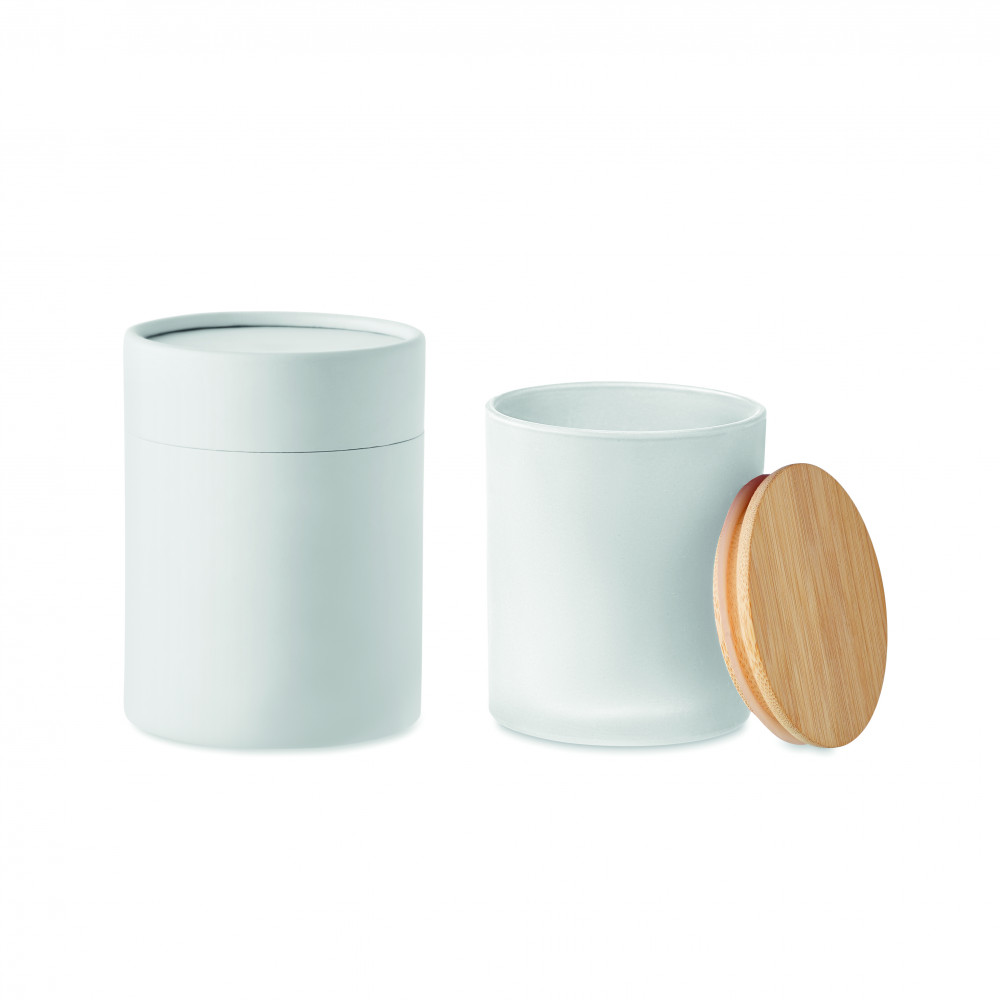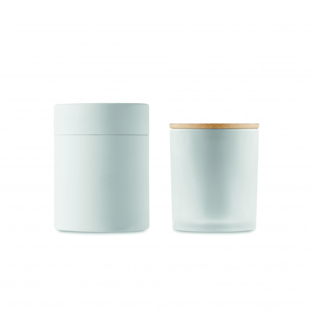 Növényi alapú illatgyertya bambuszfedeles matt üvegtartóban. 120 g. Égési idő: 20 óra. Hengeres papír ajándékdobozban szállítjuk. A bambusz természetes anyag, színében, mintázatában és méretében esetenként eltérő lehet.