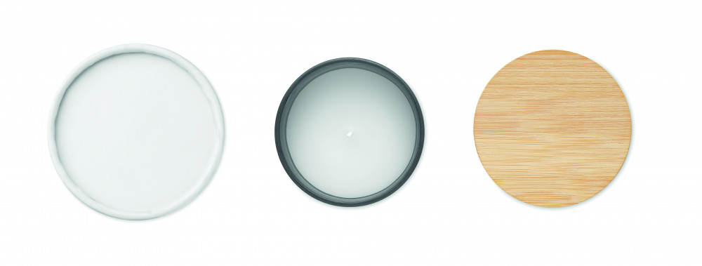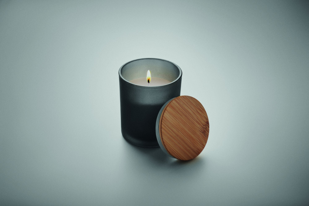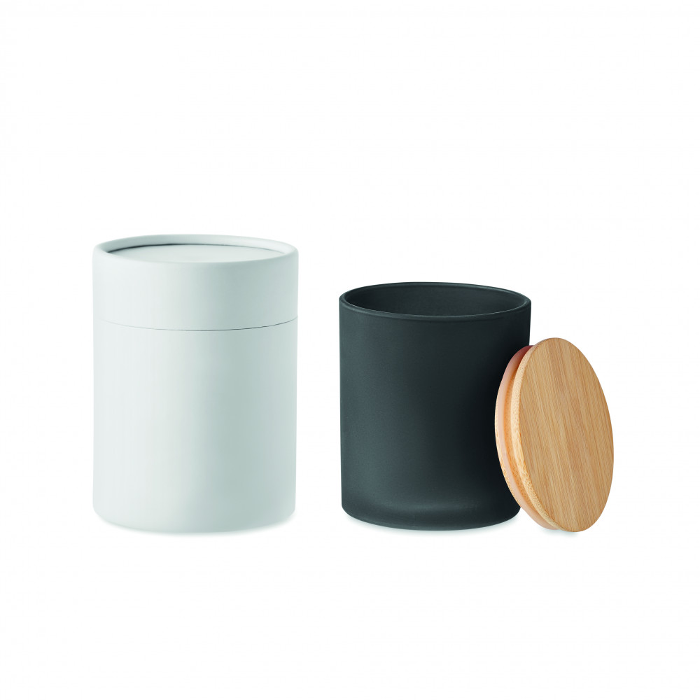 Növényi alapú illatgyertya bambuszfedeles matt üvegtartóban. 120 g. Égési idő: 20 óra. Hengeres papír ajándékdobozban szállítjuk. A bambusz természetes anyag, színében, mintázatában és méretében esetenként eltérő lehet.