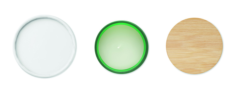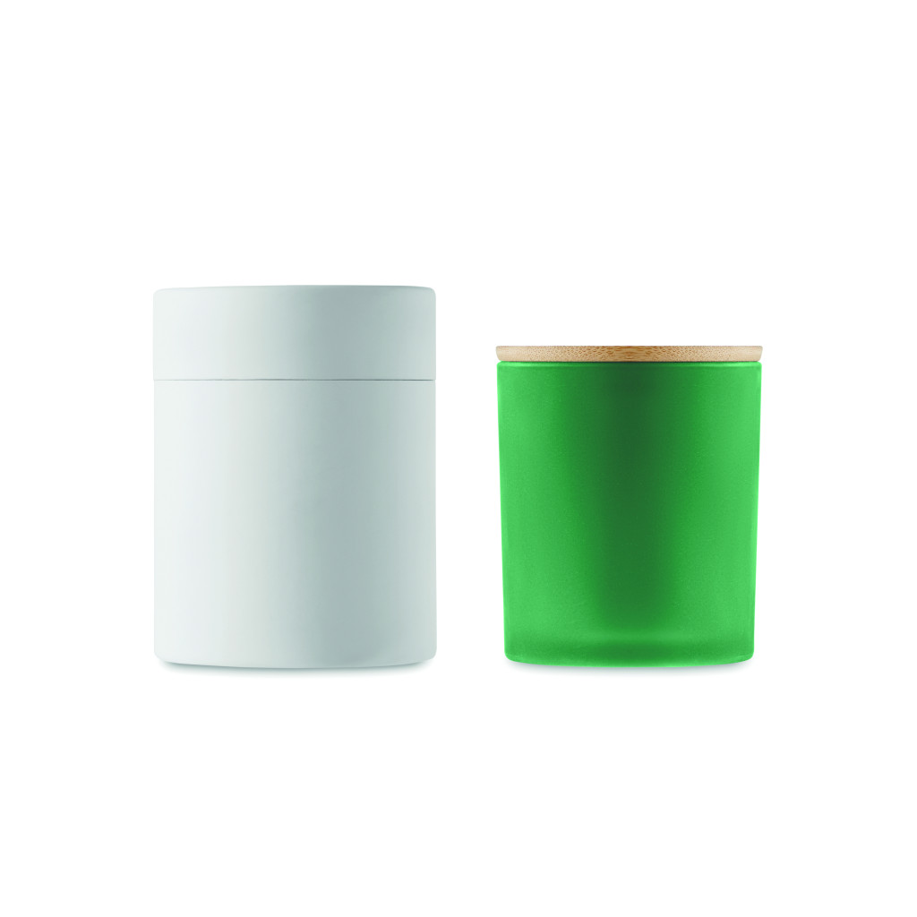 Növényi alapú illatgyertya bambuszfedeles matt üvegtartóban. 120 g. Égési idő: 20 óra. Hengeres papír ajándékdobozban szállítjuk. A bambusz természetes anyag, színében, mintázatában és méretében esetenként eltérő lehet.