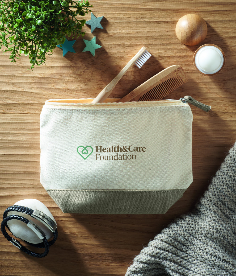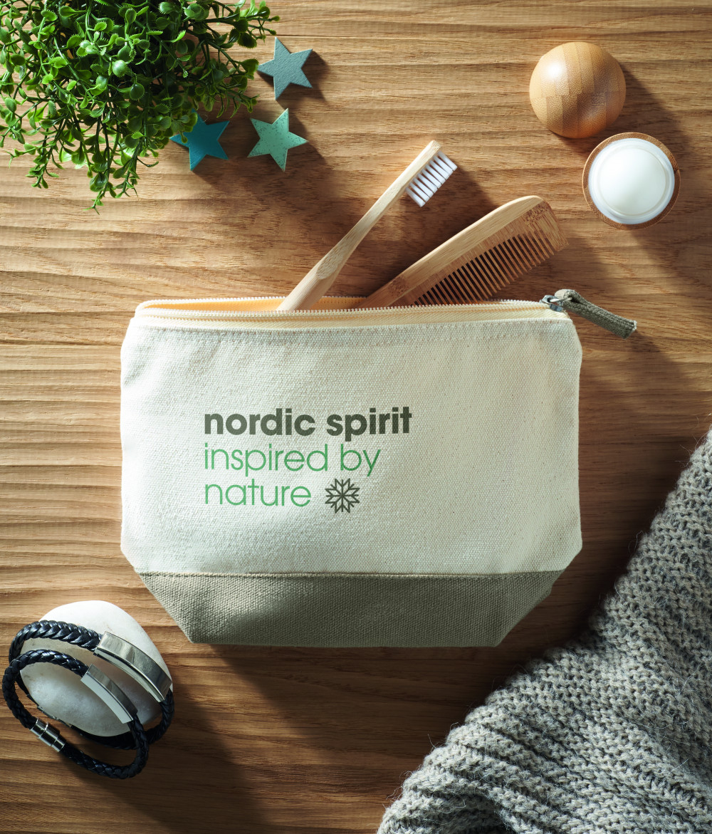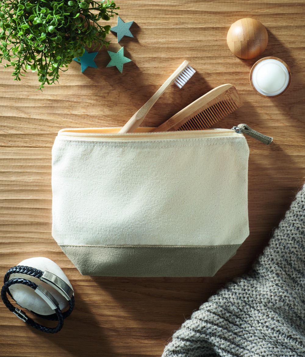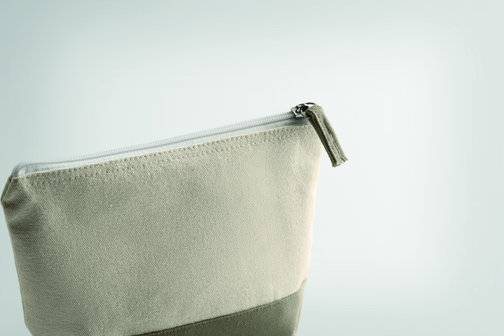 Kozmetikai táska 340 g vastag pamutvászonból, színes aljjal és cipzárhúzóval.