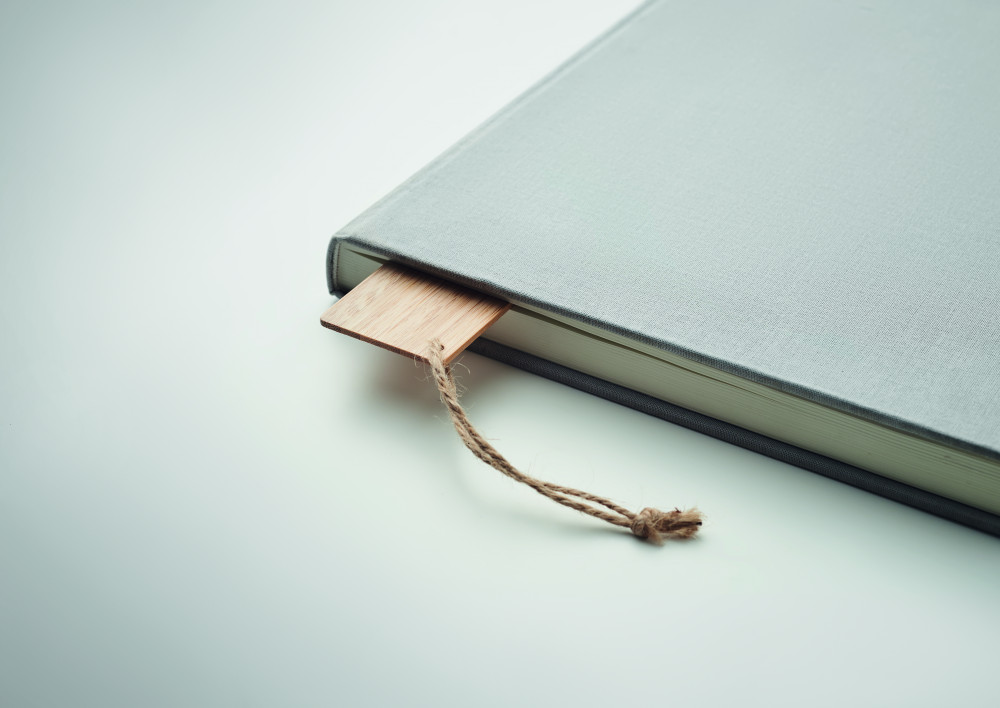 Bambusz könyvjelző juta zsinórral. A bambusz természetes anyag, színében, mintázatában és méretében esetenként eltérő lehet.