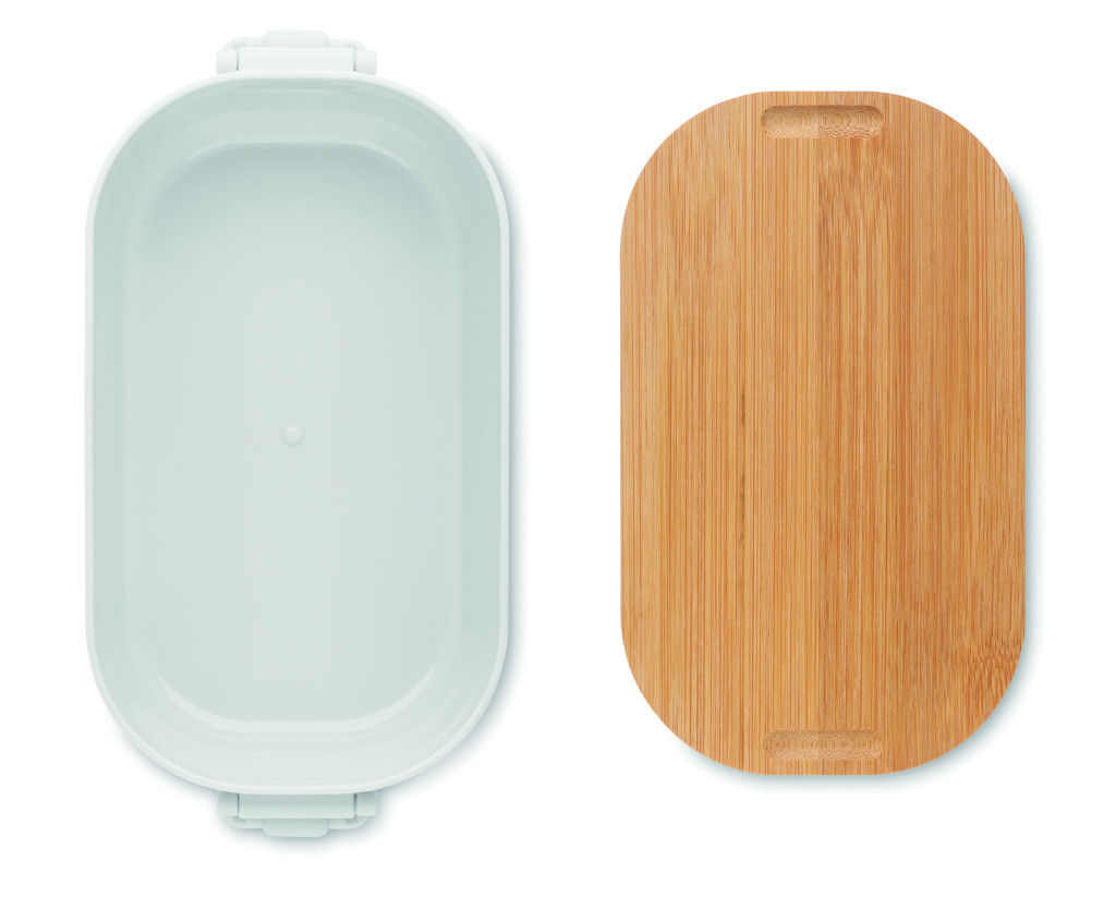 PP uzsonnásdoboz kétoldali csatos záródással és bambusz fedéllel. Űrtartalom: 700 ml.