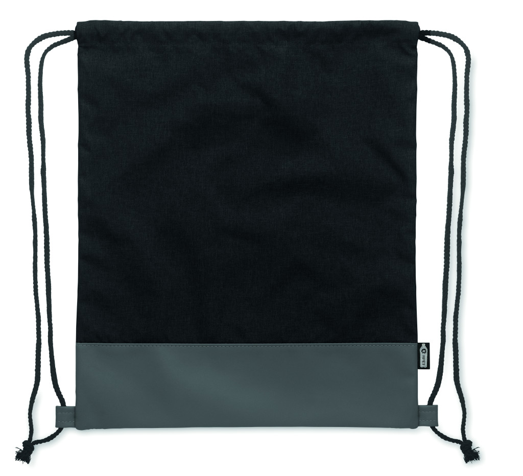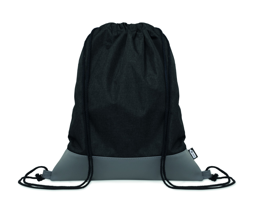 Húzózsinóros táska melírozott színű 300D RPET poliészterből, puha PU részletekkel és poliészter-pamut kevert szálas zsinórral.