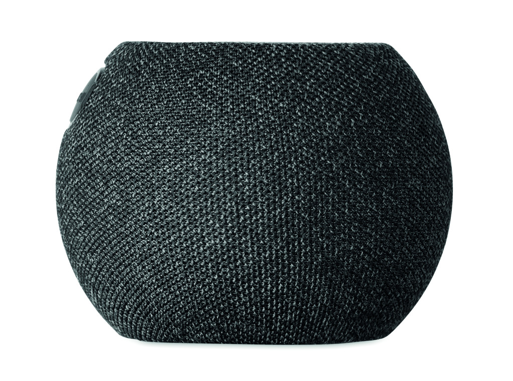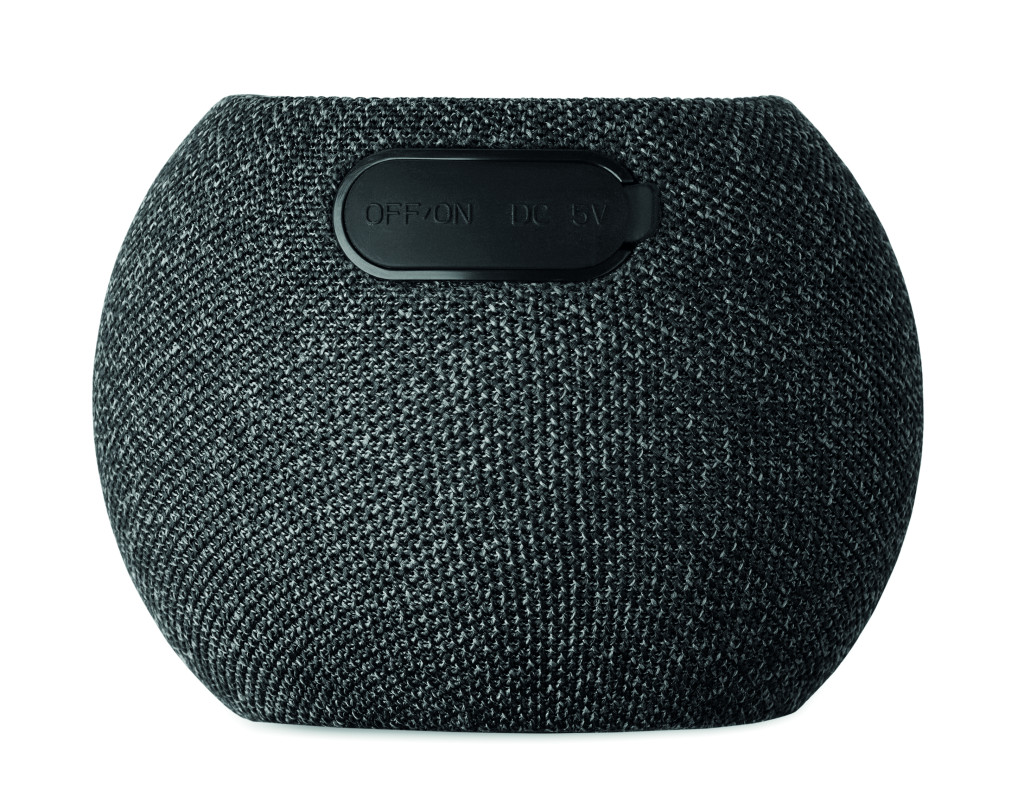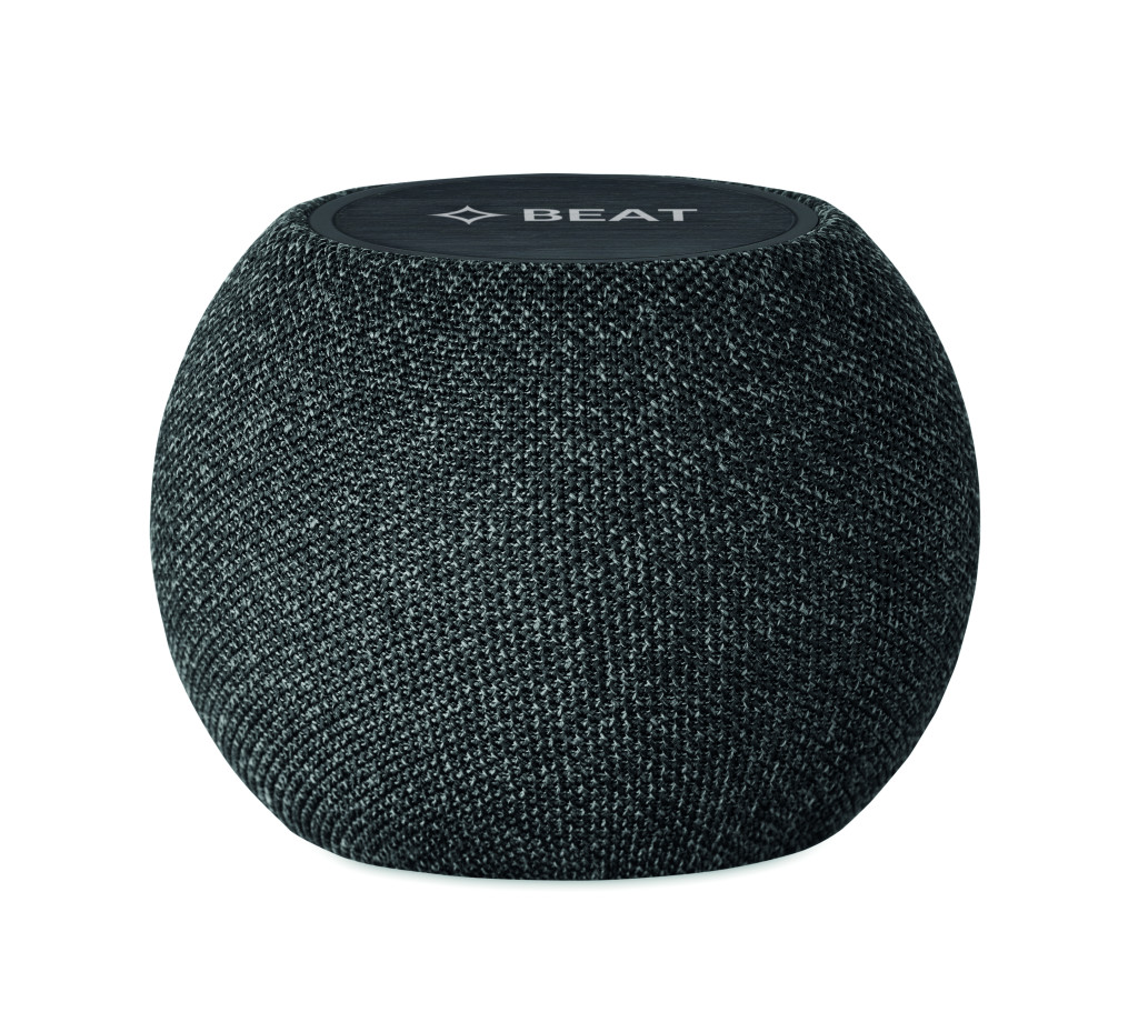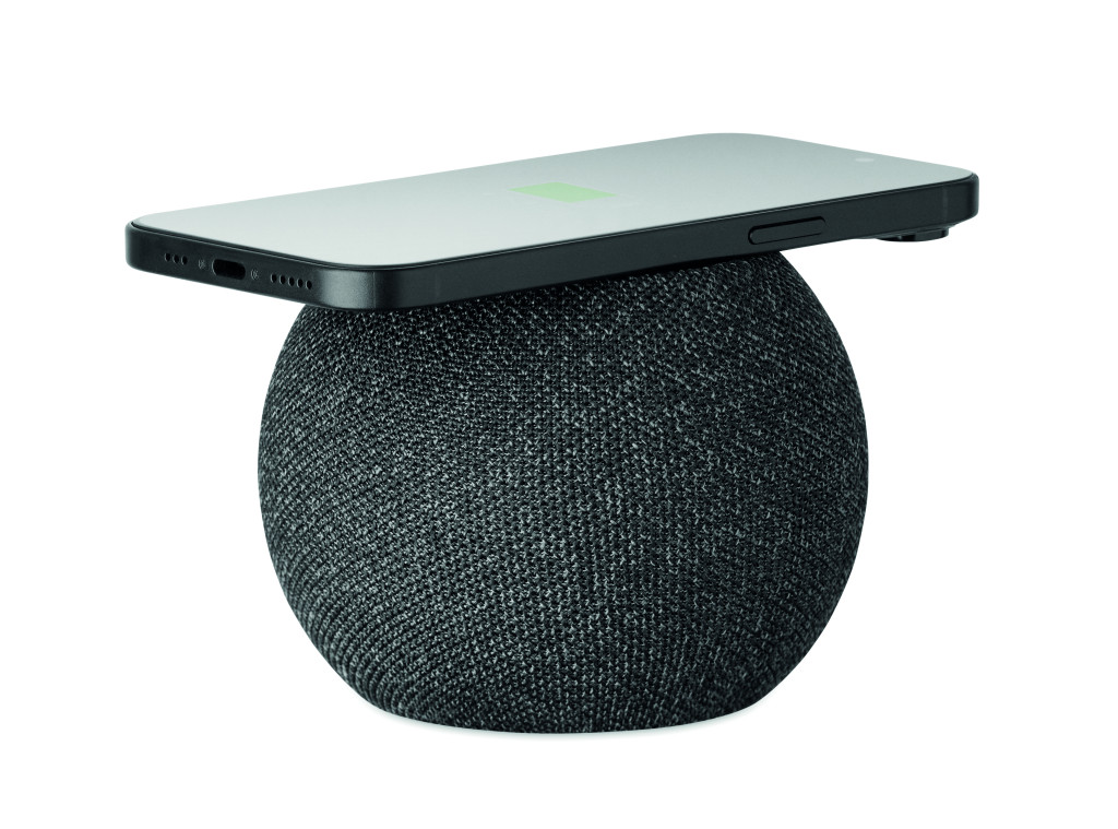 5.0 vezeték nélküli hangszóró és 15W vezeték nélküli töltő ABS-ből, RPET hangfalselyemmel, a tetején fekete bevonatú bambusz részlettel. 1 újratölthető 1200 mAh lítium-ion elemmel. SD-kártya porttal és AUX/USB kábellel. Teljesítmény: 5W, 3 Ohm és 5V. Üzemidő kb. 5 óra.