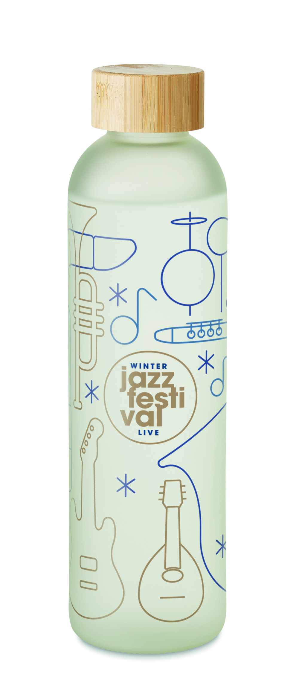 Üvegpalack speciális, szublimációs nyomtatást lehetővé tévő bevonattal és bambuszfedéllel. Űrtartalom: 650 ml. A bambusz természetes anyag, színében, mintázatában és méretében esetenként eltérő lehet.