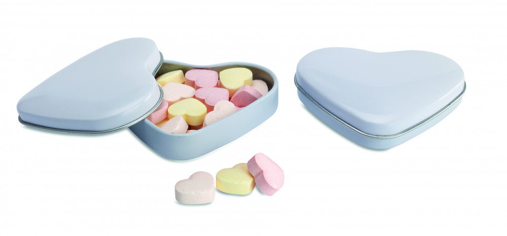 24 g édes, szív alakú cukorka szív alakú dobozban.