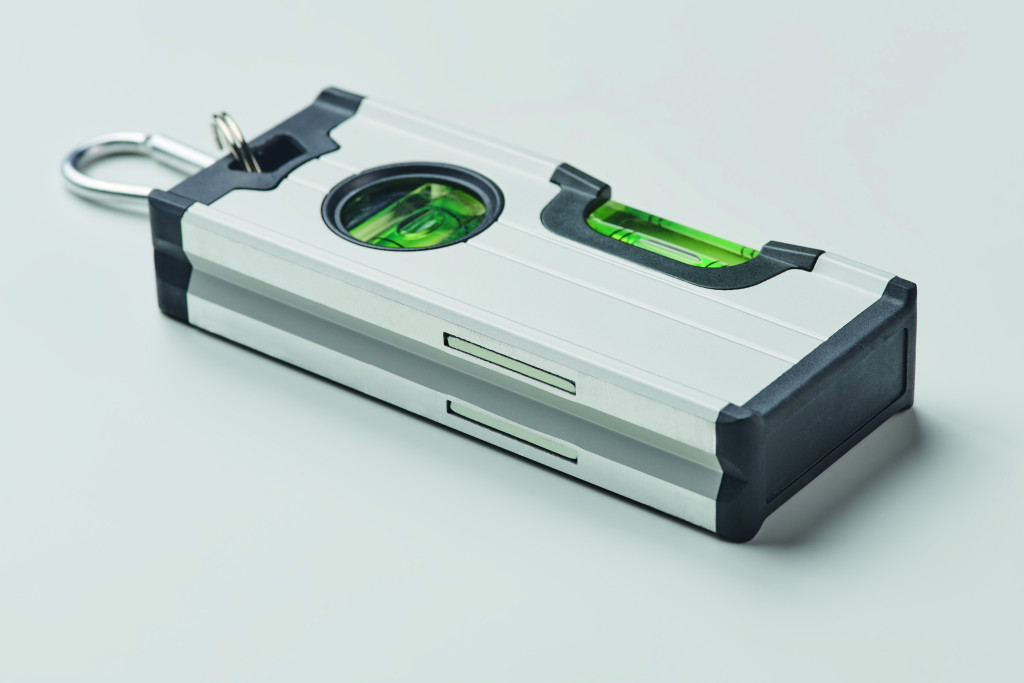 Mini mágneses, kettős vízmérték alumínium házban, karabinerrel. A karabiner hegymászásra, védőfelszerelés céljára nem alkalmas.