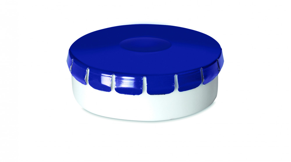 12 grammos cukormentes mentolos cukorka műanyag dobozban, bádogfedéllel és műanyag aljjal. Egyszerűen, nyomásra nyílik.