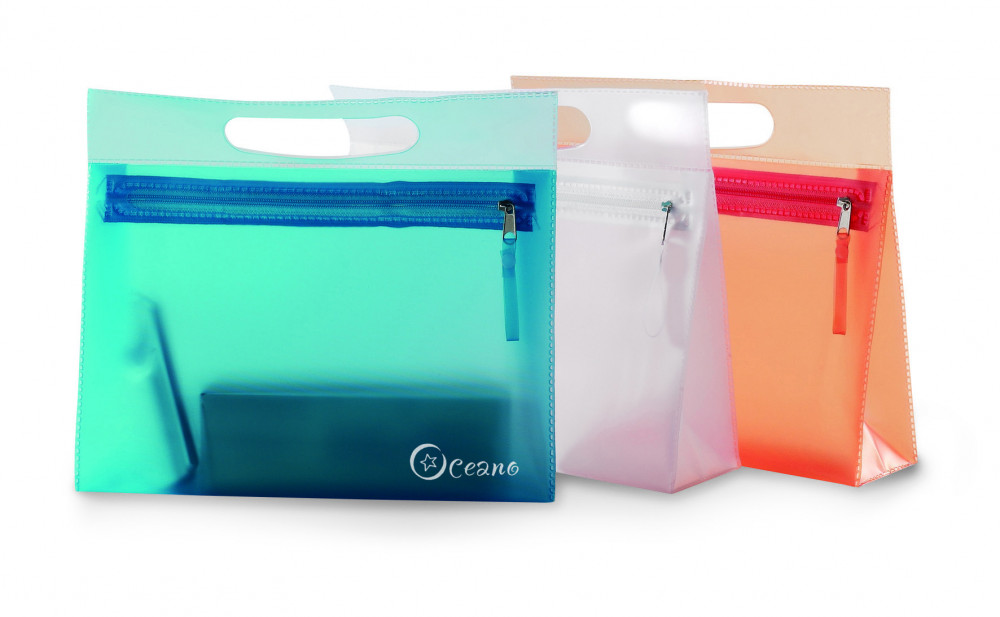 Átlátszó PVC kozmetikai táska cipzárral.