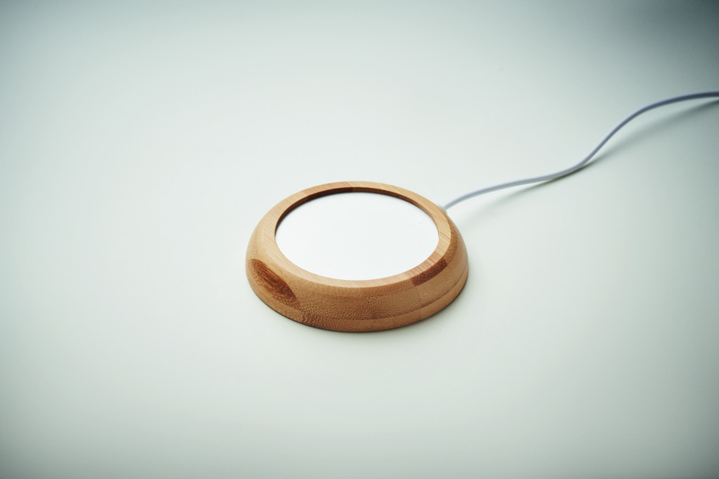 Bögremelegítő eszköz bambuszból. Az italokat max. 45°C-ig tartja melegen. USB csatlakozókábellel.